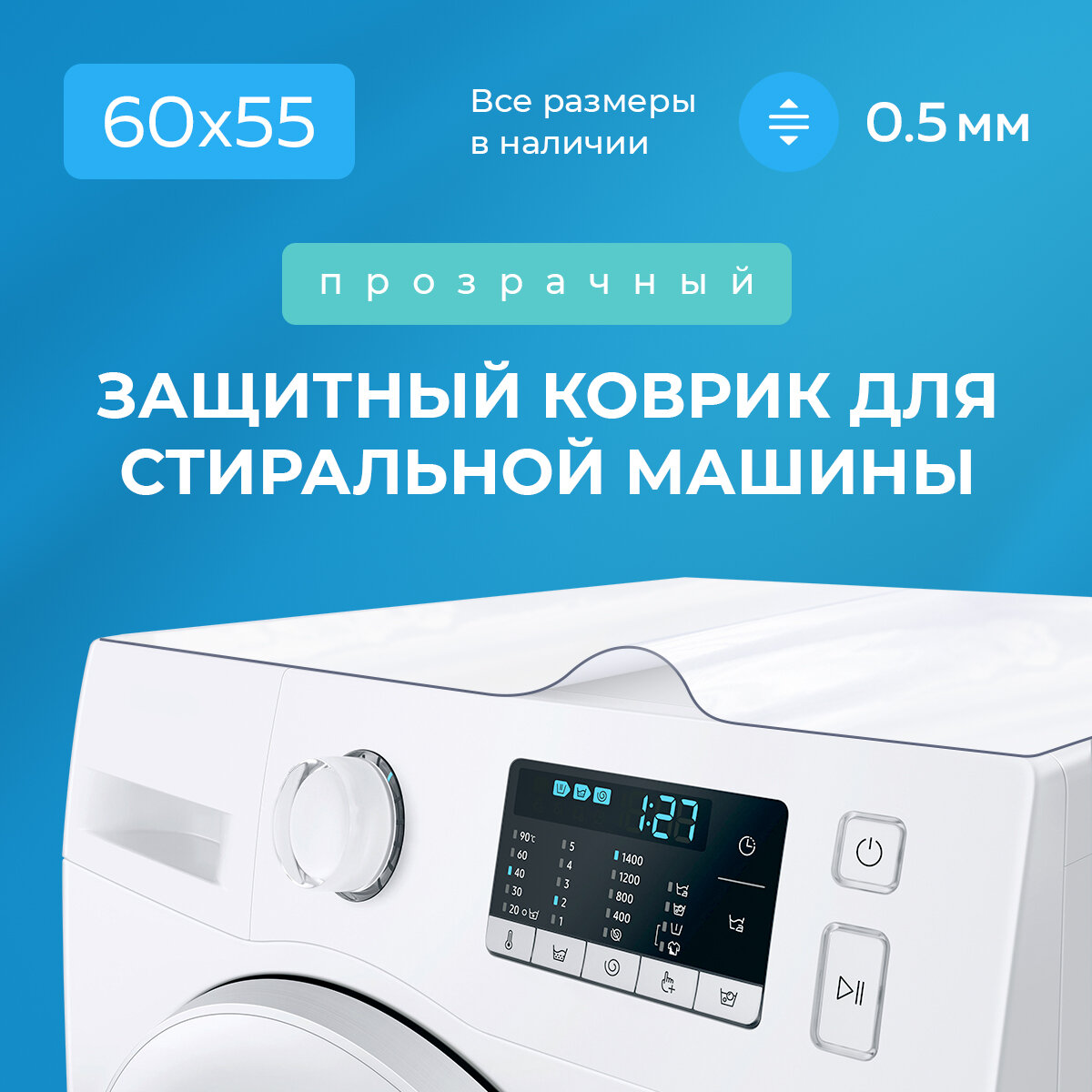 Прозрачный коврик на стиральную машинку гибкое жидкое стекло 60х55 см, 55х60 см, 0,5мм информация: