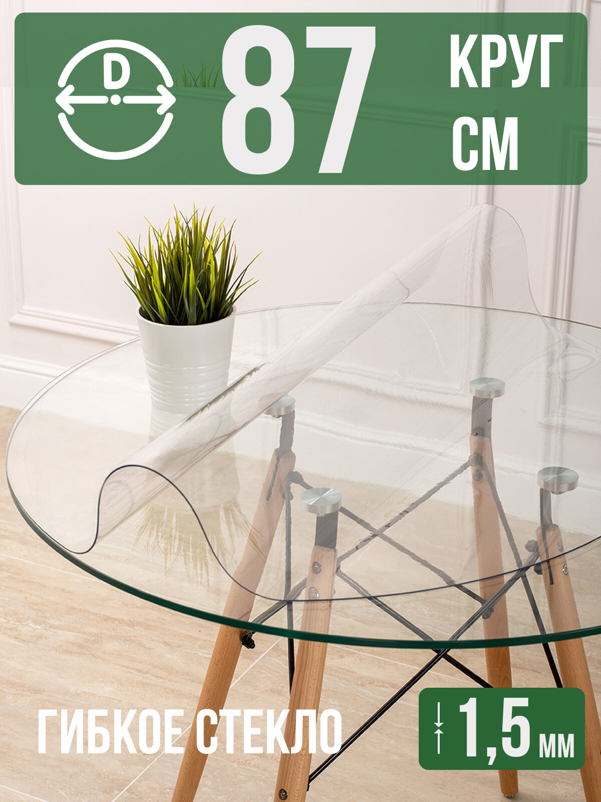 Круглая силиконовая прозрачная скатерть ПВХ, гибкое мягкое стекло 1,5мм диаметр 87см на стол информация: