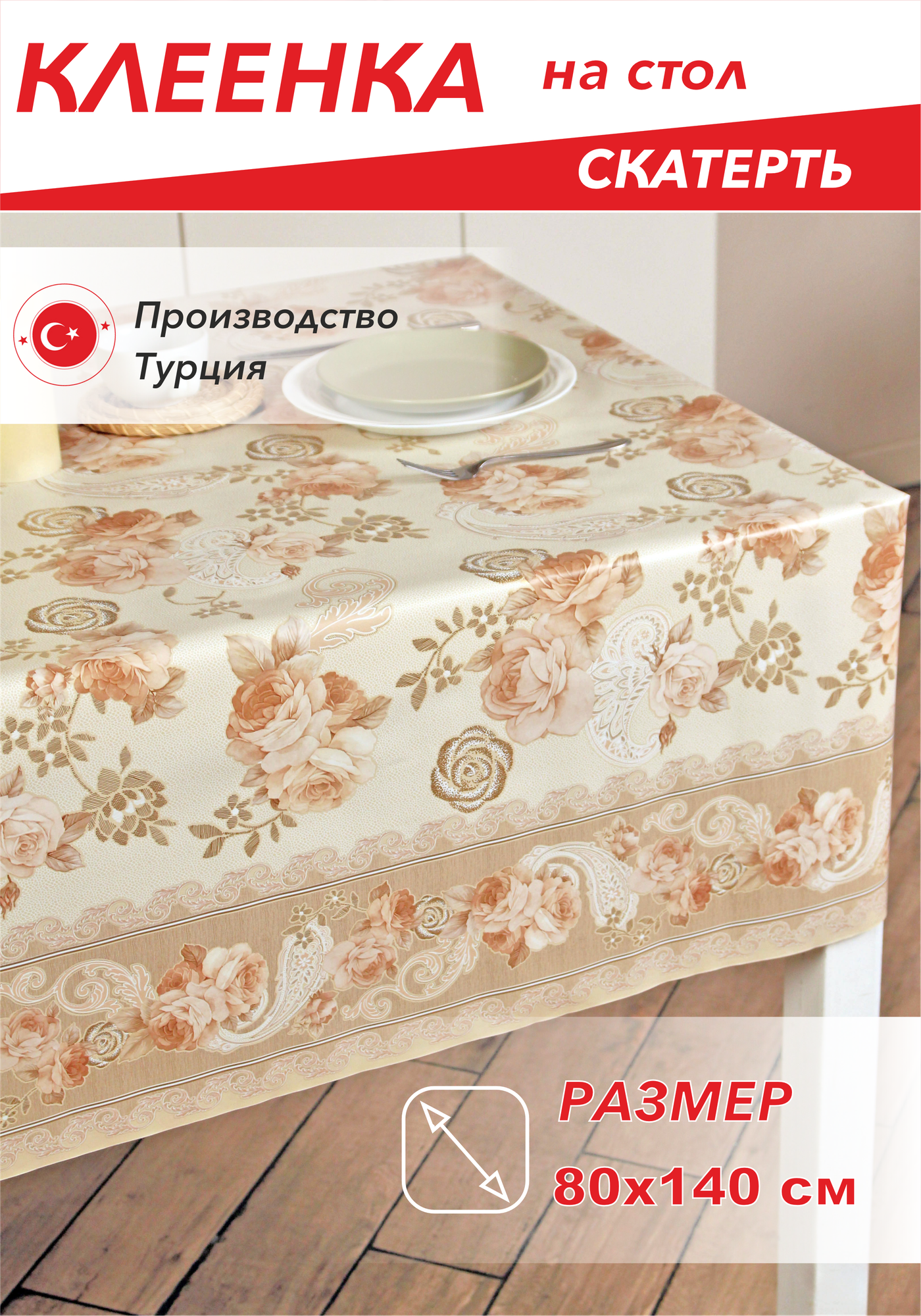 Скатерть, Клеенка на стол dekorama 80x140см Golden Roses DEK-66A информация: