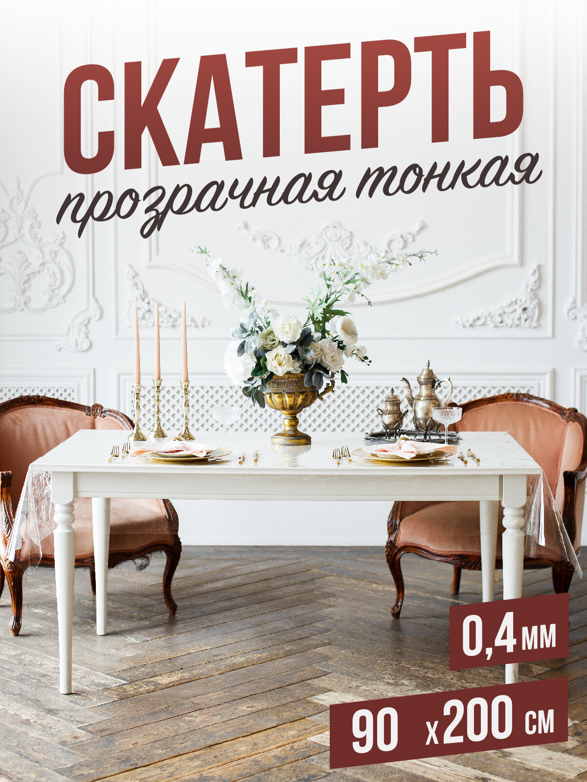 Силиконовая прозрачная скатерть ПВХ, гибкое мягкое стекло 0,4мм 90x200см клеенка на стол информация:
