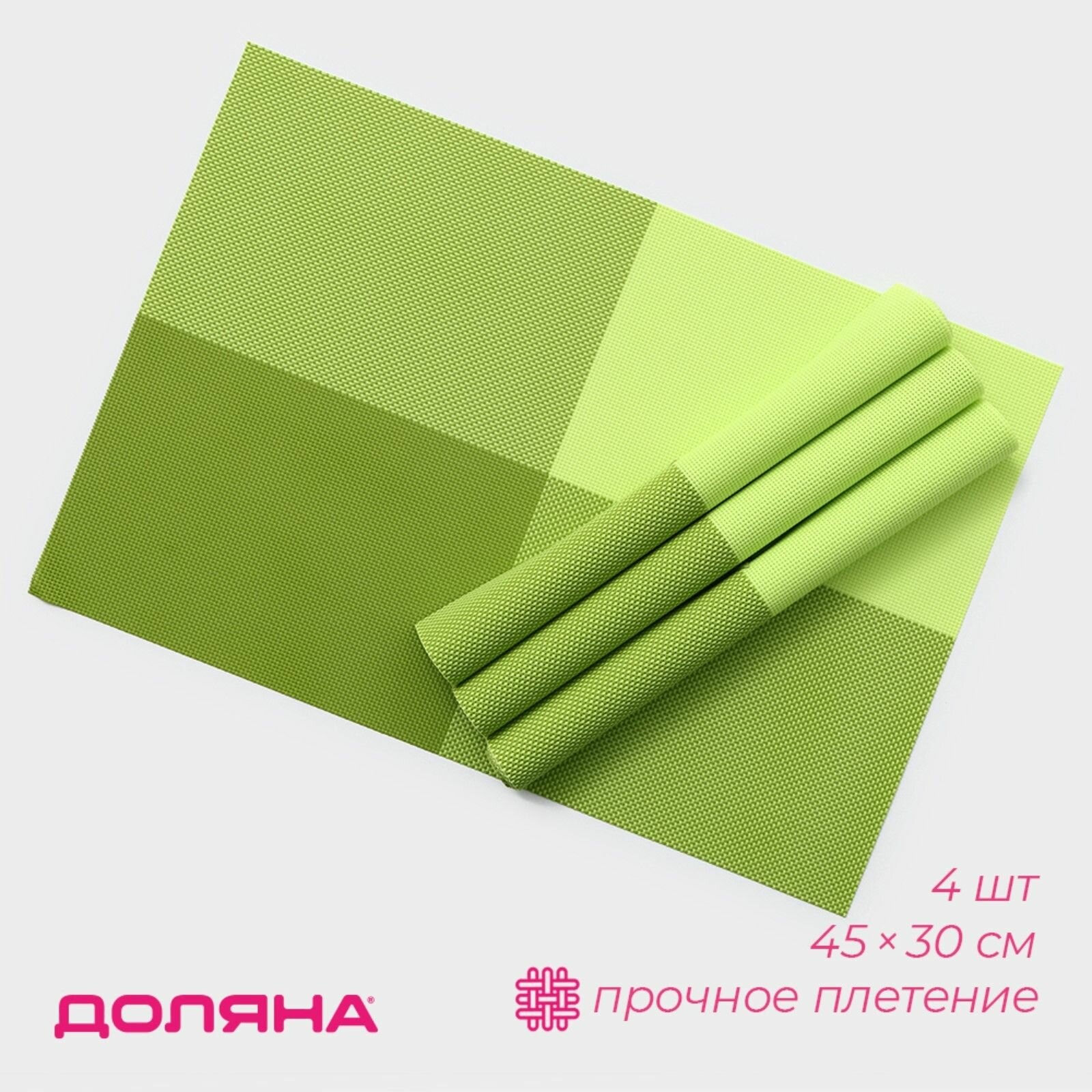10 цен на Набор салфеток сервировочных на стол Доляна "Настроение", 4 шт, 45х30 см, цвет зеленый