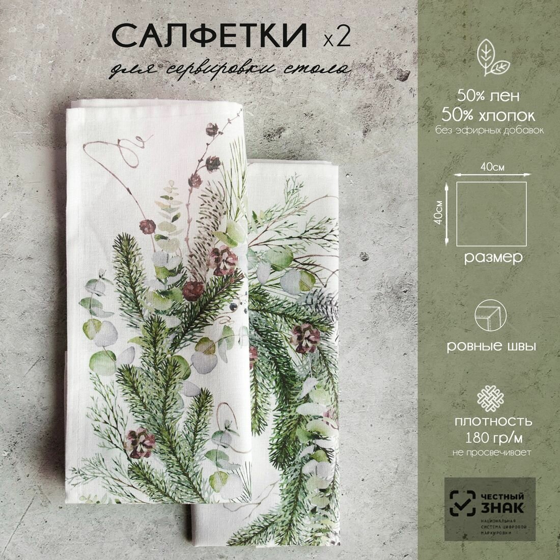 Набор салфеток сервировочных с принтом "зимний венок" из умягченной льняной ткани информация: