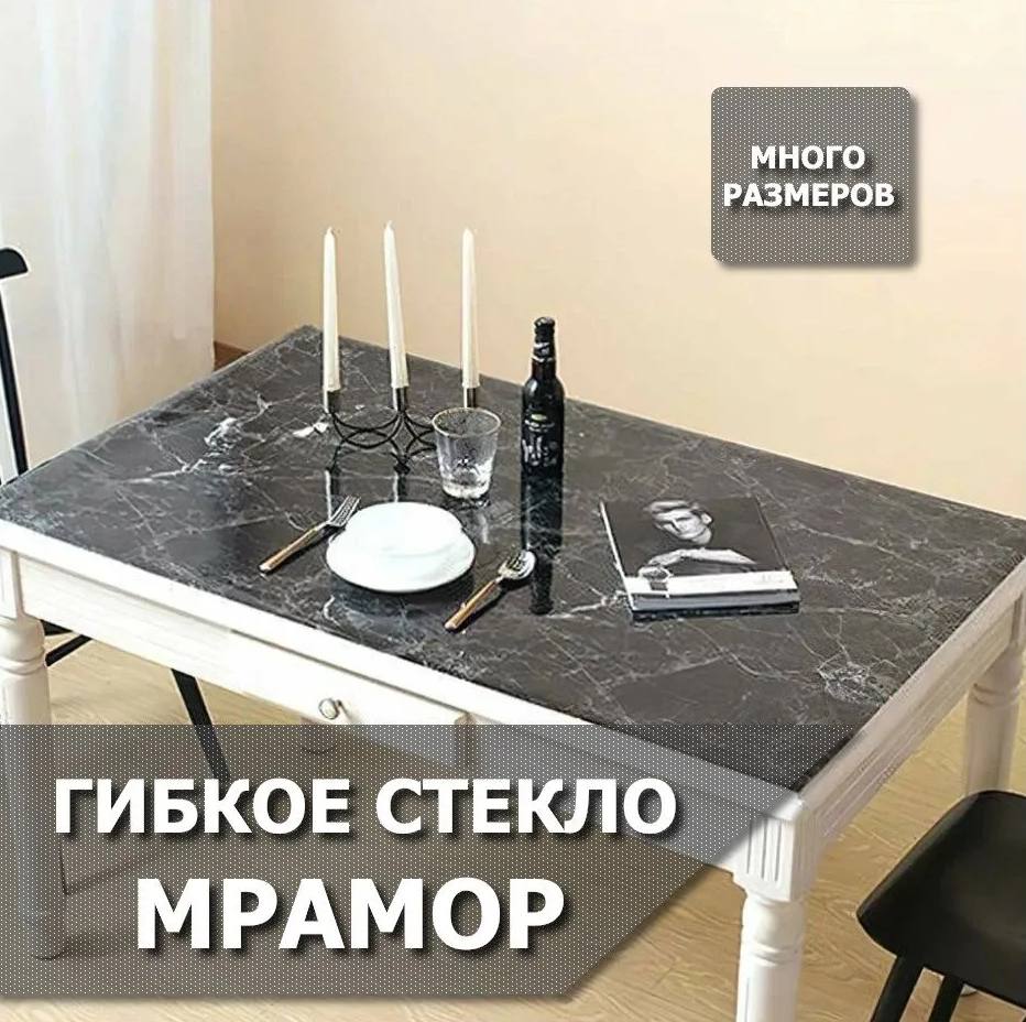 Отзывы на Скатерть ФлексШоп "Черный мрамор", ПВХ, гибкая, антискользящая, водоотталкивающая 80х120 см.