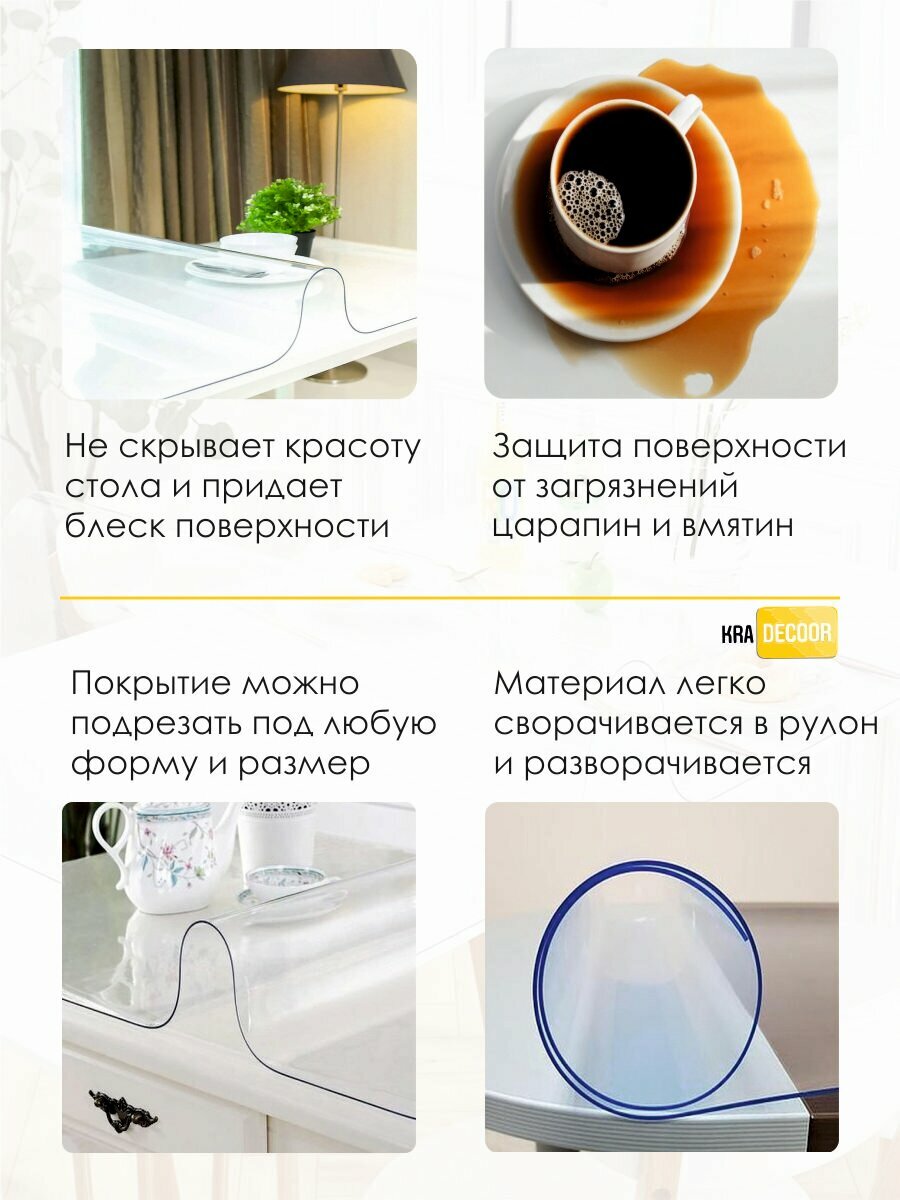 Скатерть прозрачная 140 x 190 см, толщина 0,2 мм (200 мк) / мягкое-гибкое стекло ПВХ