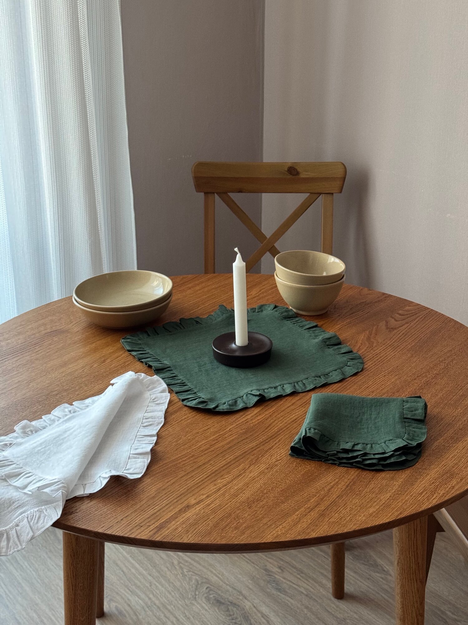 Сервировочная салфетка "Льняная" LenJuLen, с рюшами, квадратная, зеленый, 35см х 35 см информация: