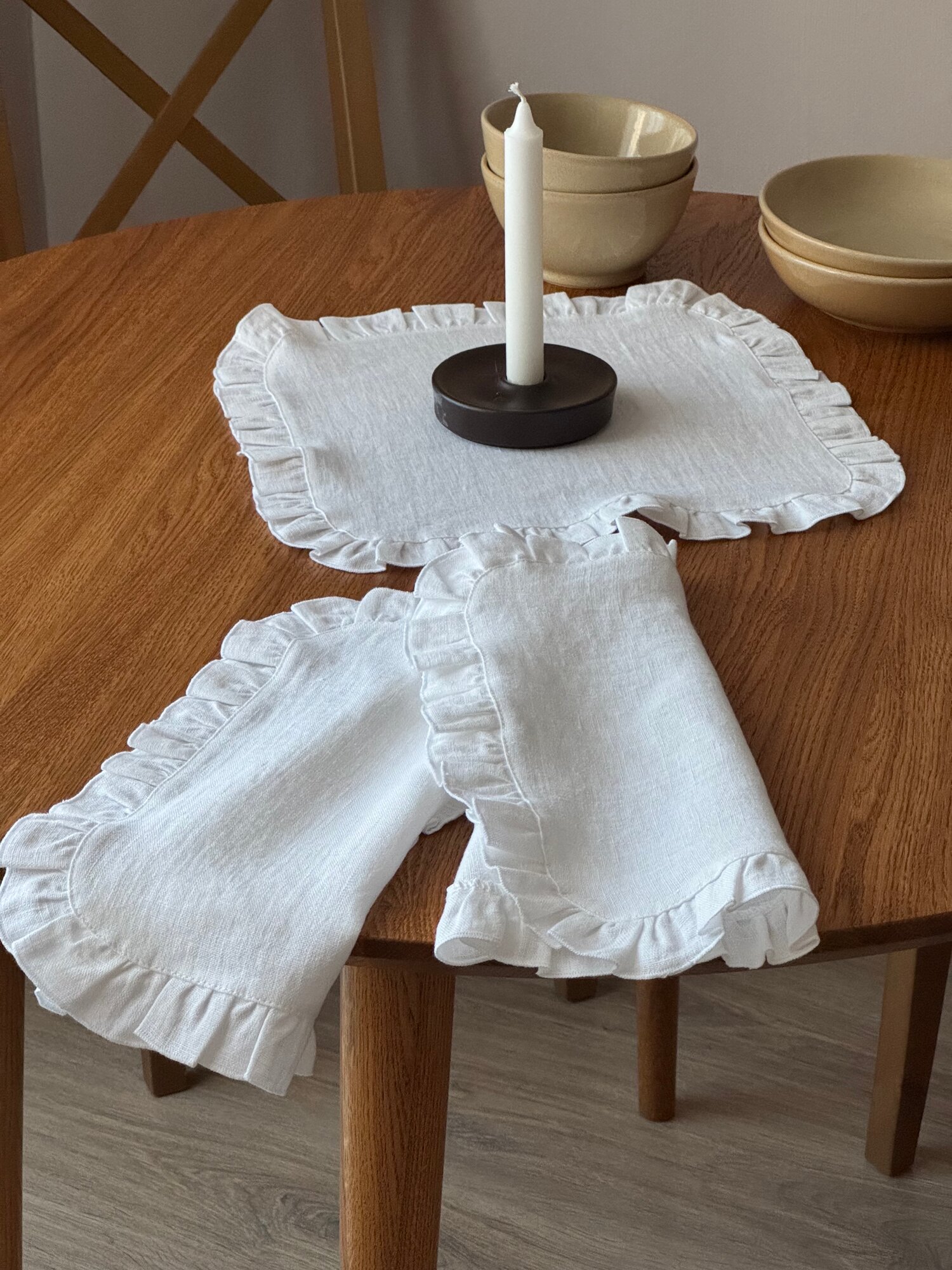 Сервировочная салфетка LenJuLen "Белая", лен, с рюшами, 30 см x 40 см 1 485 ₽