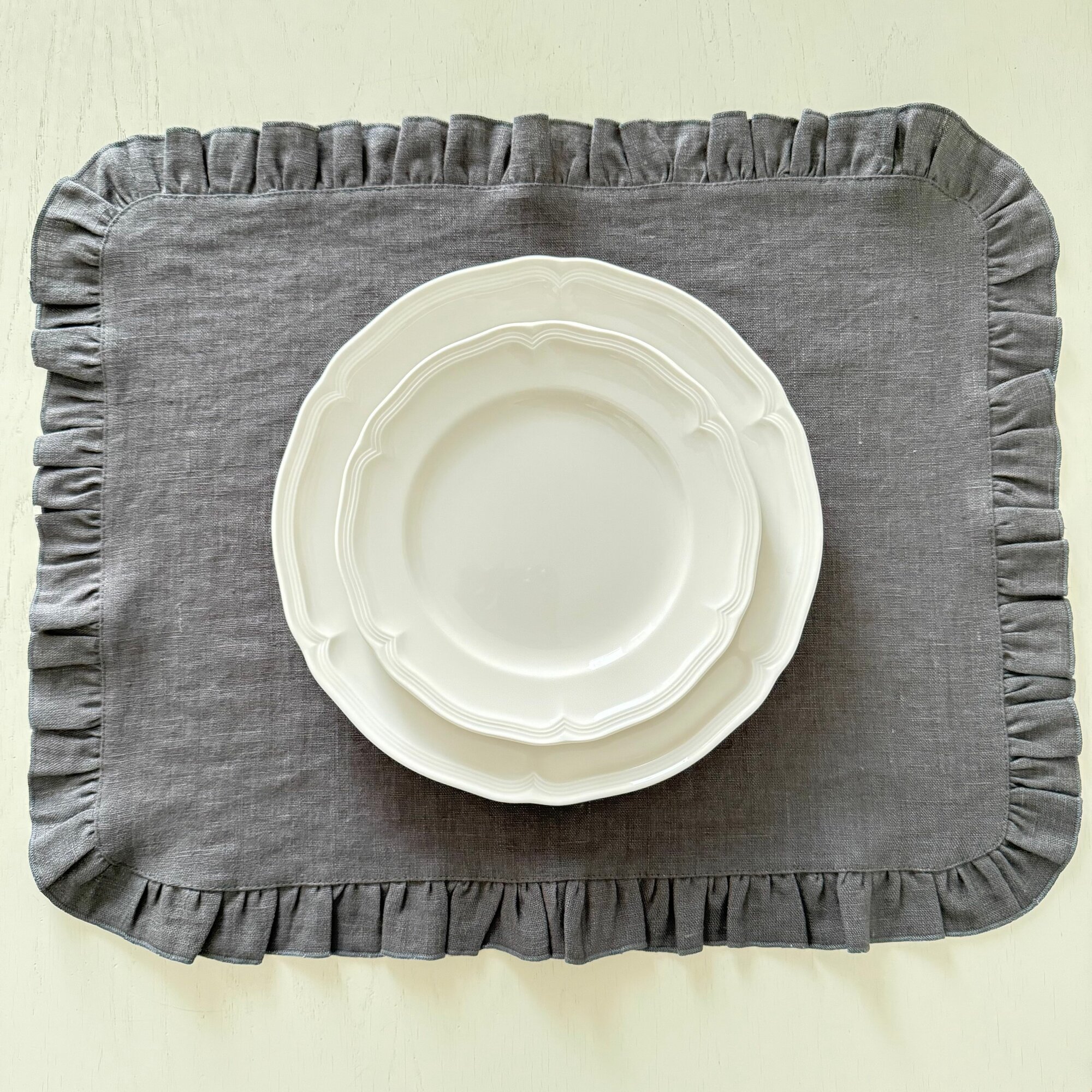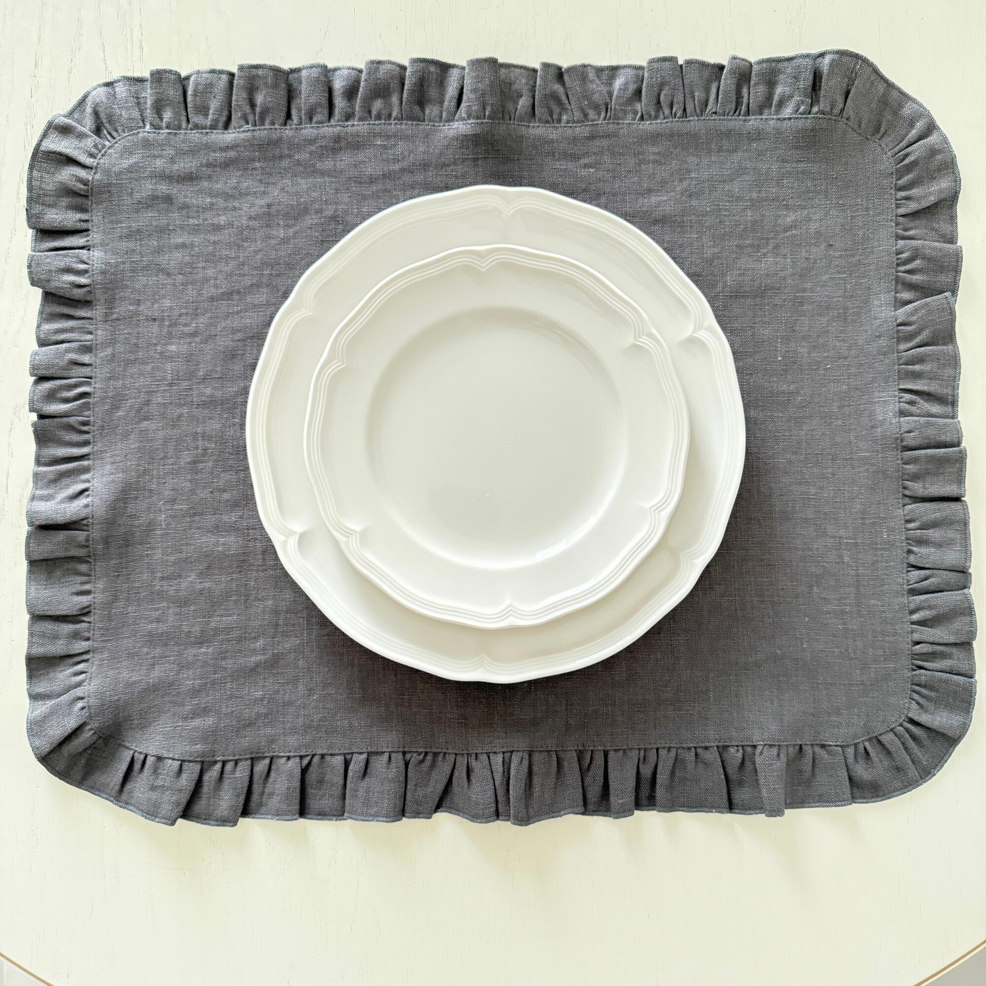 Сервировочная салфетка LenJuLen "Рюши", лен, 35 см x 35 см, серая 1 110 ₽