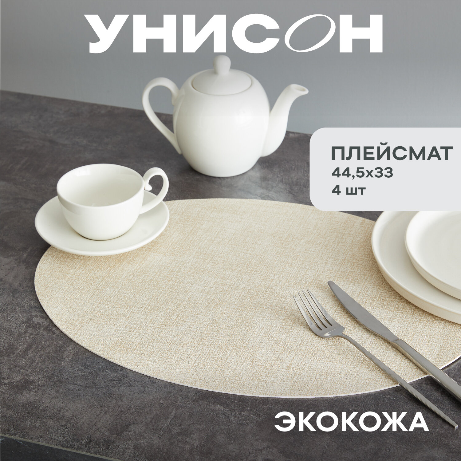 10 цен на Комплект плейсматов иск кожа овал 44,5х33 (4 шт.) "Унисон" linen off white
