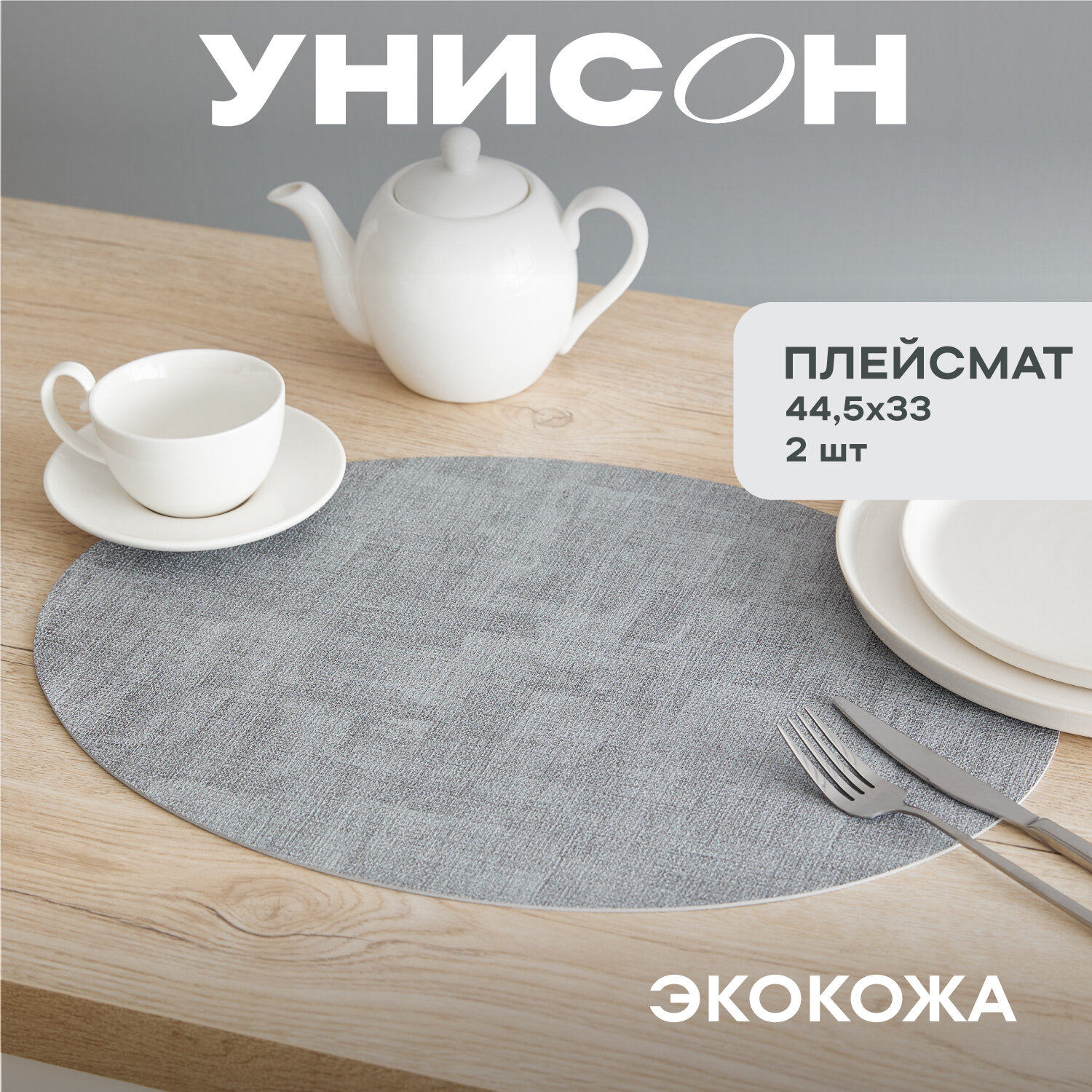 10 цен на Комплект плейсматов иск кожа овал 44,5х33 (2 шт.) "Унисон" linen light grey