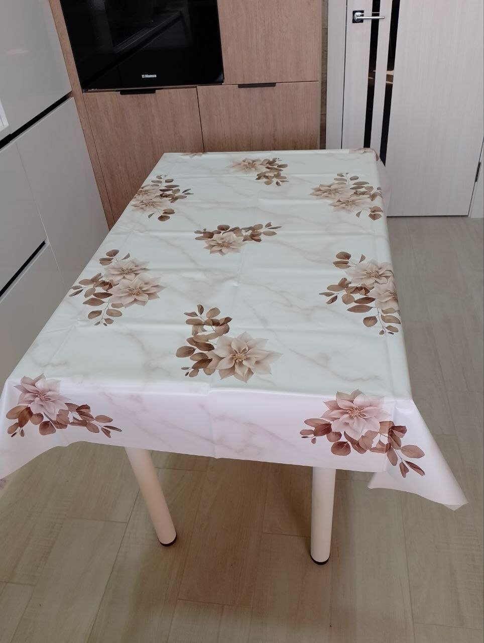 Клеенка плотная на стол с рисунком коричневые цветы 160х140 945 ₽