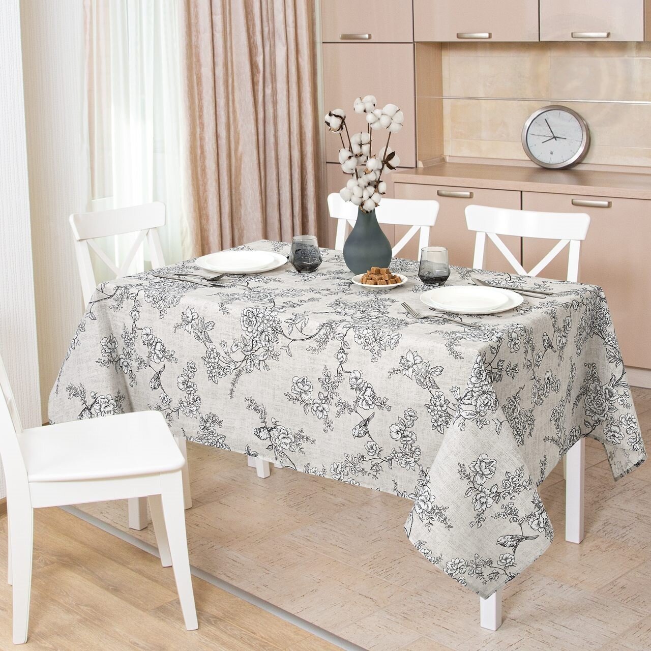 Скатерть столовая АртПостель, «Шантильи» из рогожки 120*145см, цветы, серый