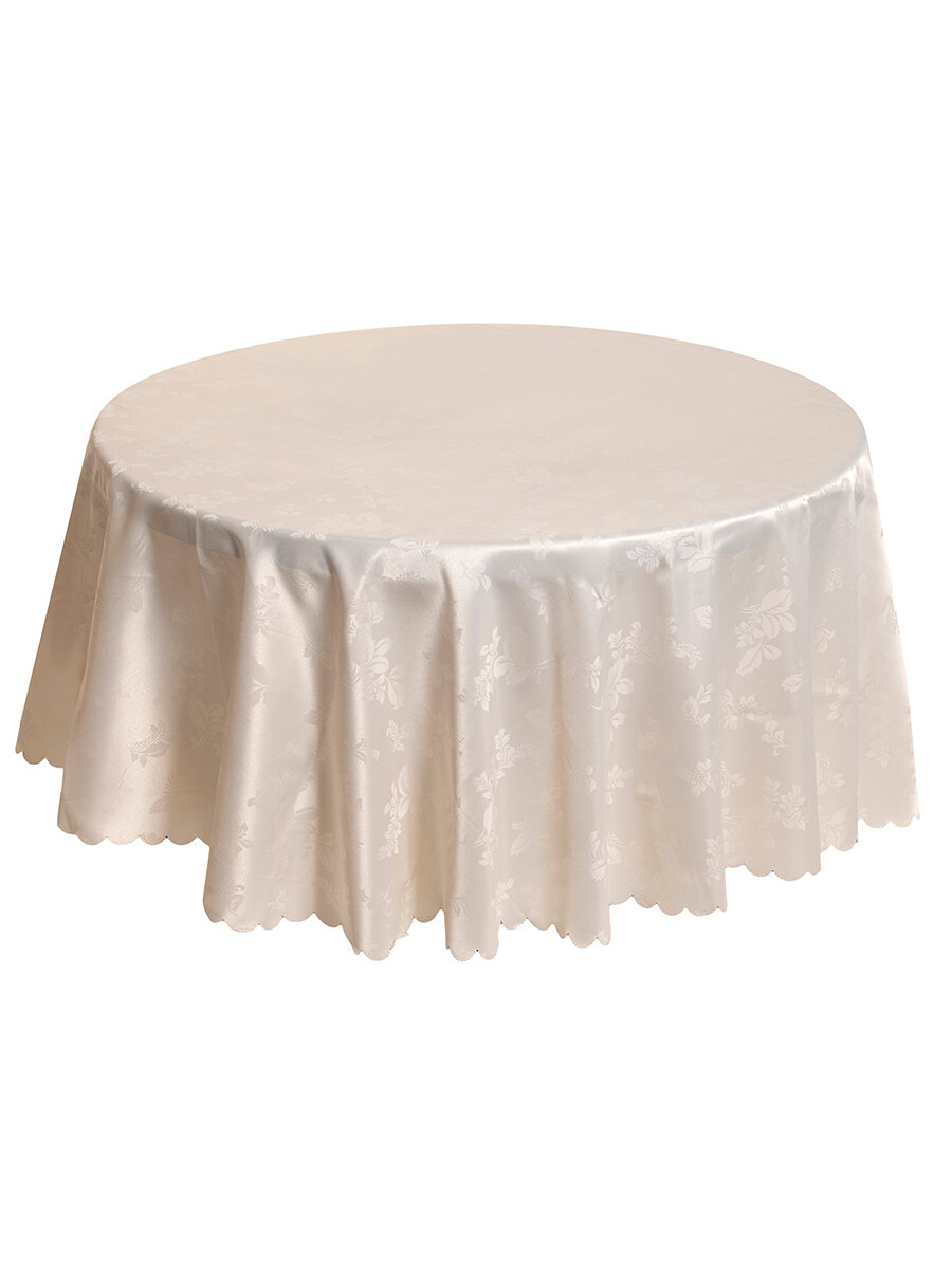 10 цен на Скатерть на стол круглая Santa Barbara T017, водоотталкивающая с пропиткой, полиэстер, бежевая, 160 см