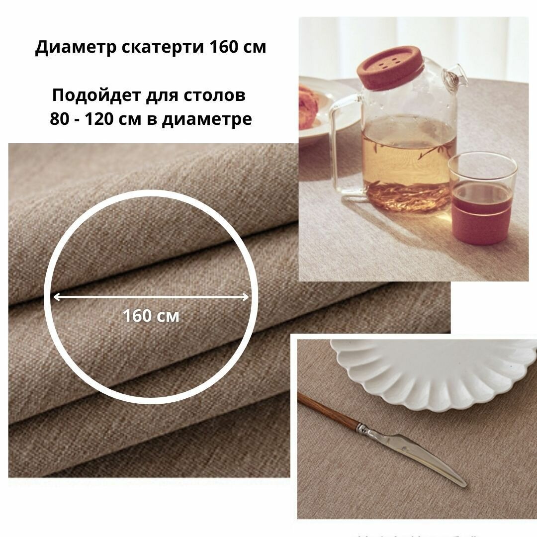Скатерть круглая на стол водоотталкивающая тканевая бежевая однотонная 160 см, Бохо Сканди, не клеенка информация: