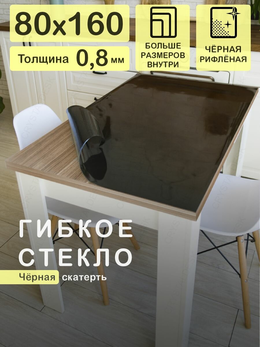 10 цен на Черная скатерть CrystalDesk на стол 160x80 см. Рифленое гибкое стекло 0.8 мм. Мягкая клеенка ПВХ.