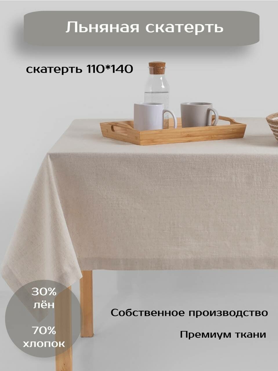 10 цен на Скатерть Batuffolo Natural Linen, Лен/Хлопок, 110*140
