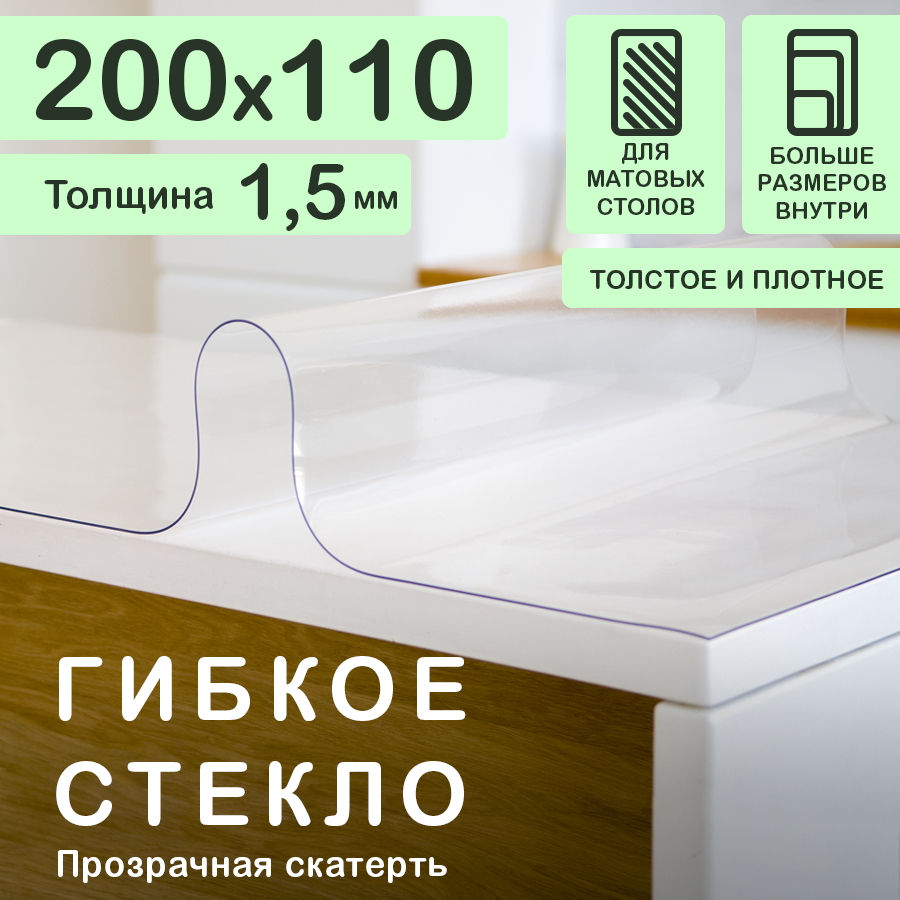 Прозрачная скатерть на стол (гибкое/мягкое стекло) CrystalDesk. Толщина 1,5 мм. ПВХ скатерть. 110х200 см. Прозрачная. информация: