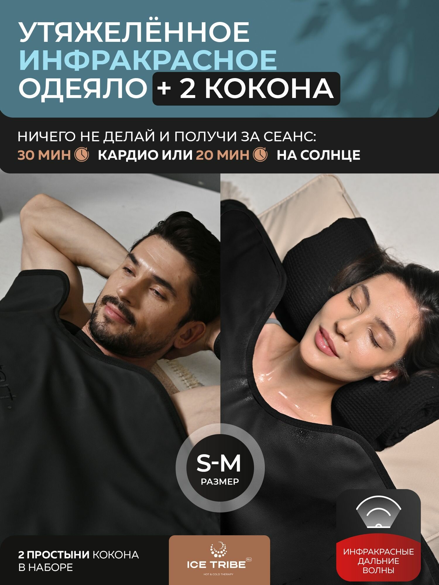 Отзывы на Инфракрасная сауна 25-80 градусов с автоматическим таймером, для двоих, два одеяла кокона в комплекте, Rich Black 180*180 см от ICETRIBE