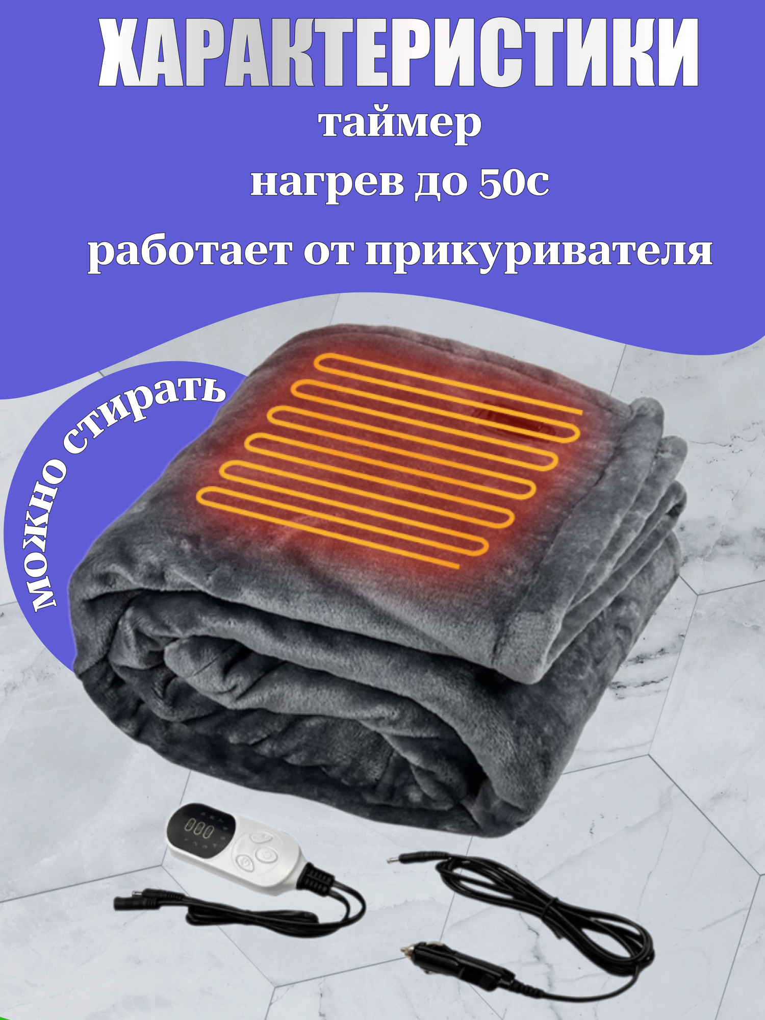 Автомобильное электрическое одеяло 100х75 см информация: