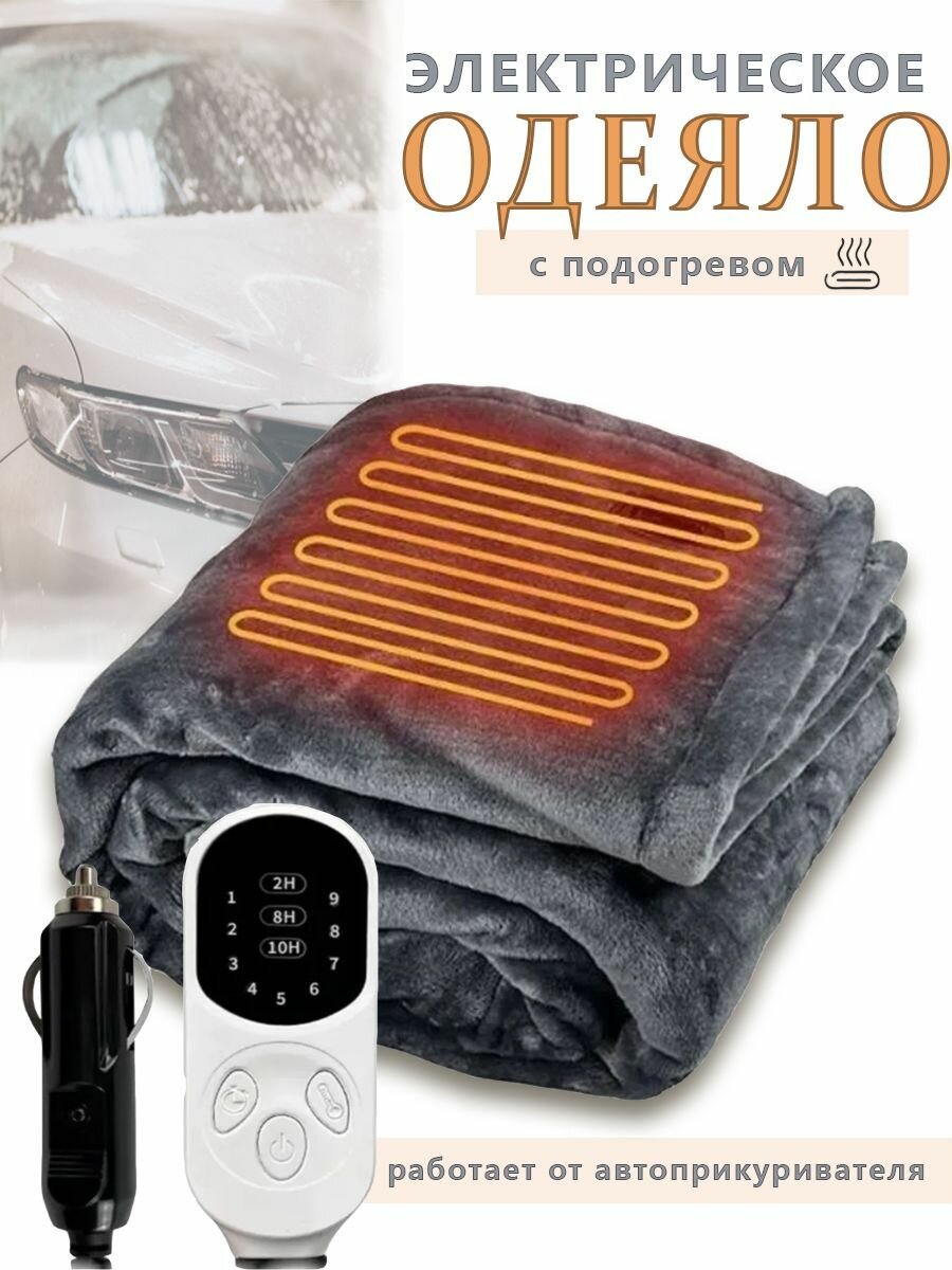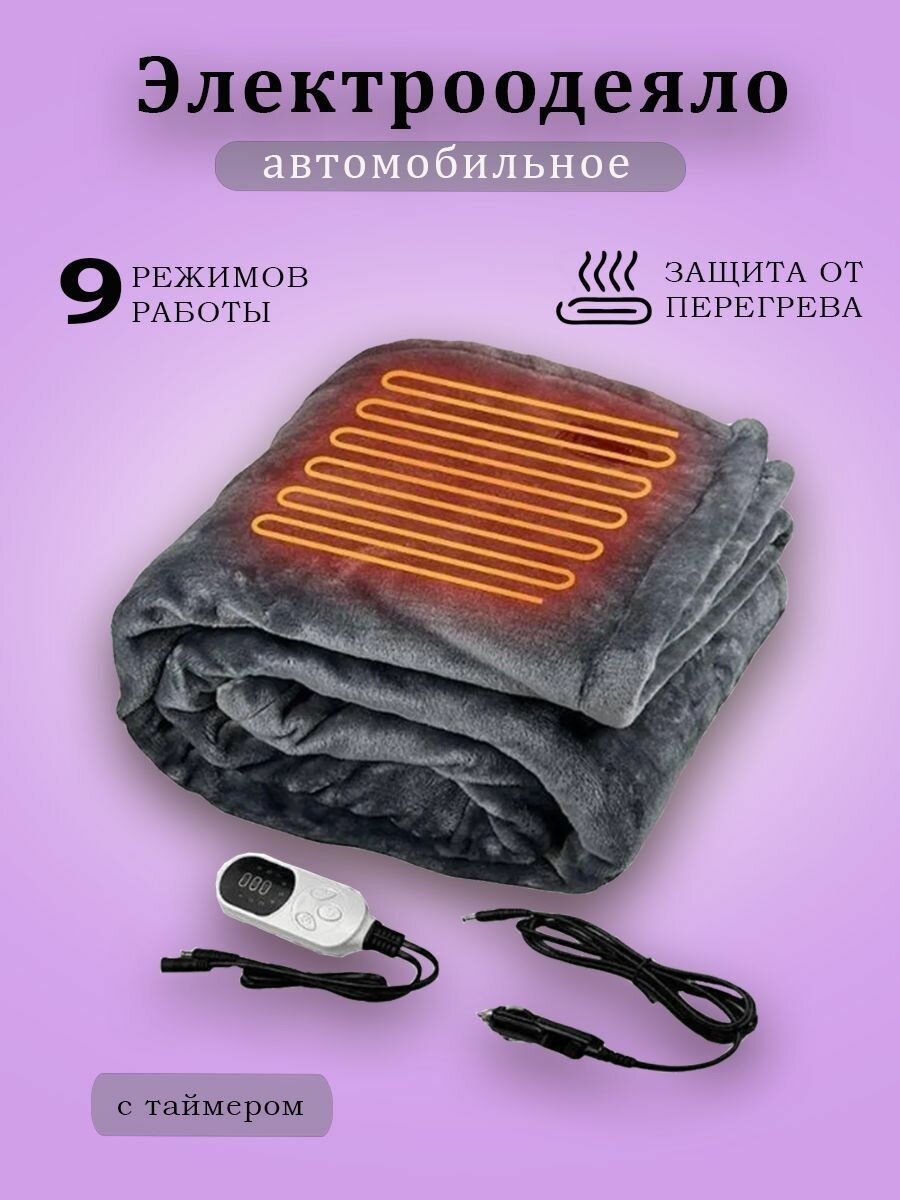 10 цен на Автомобильное электрическое одеяло 100х75 см с питанием от автоприкуривателя и таймером