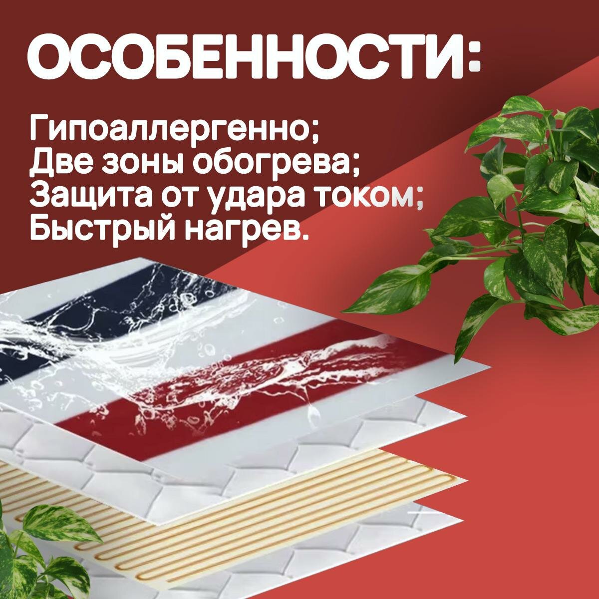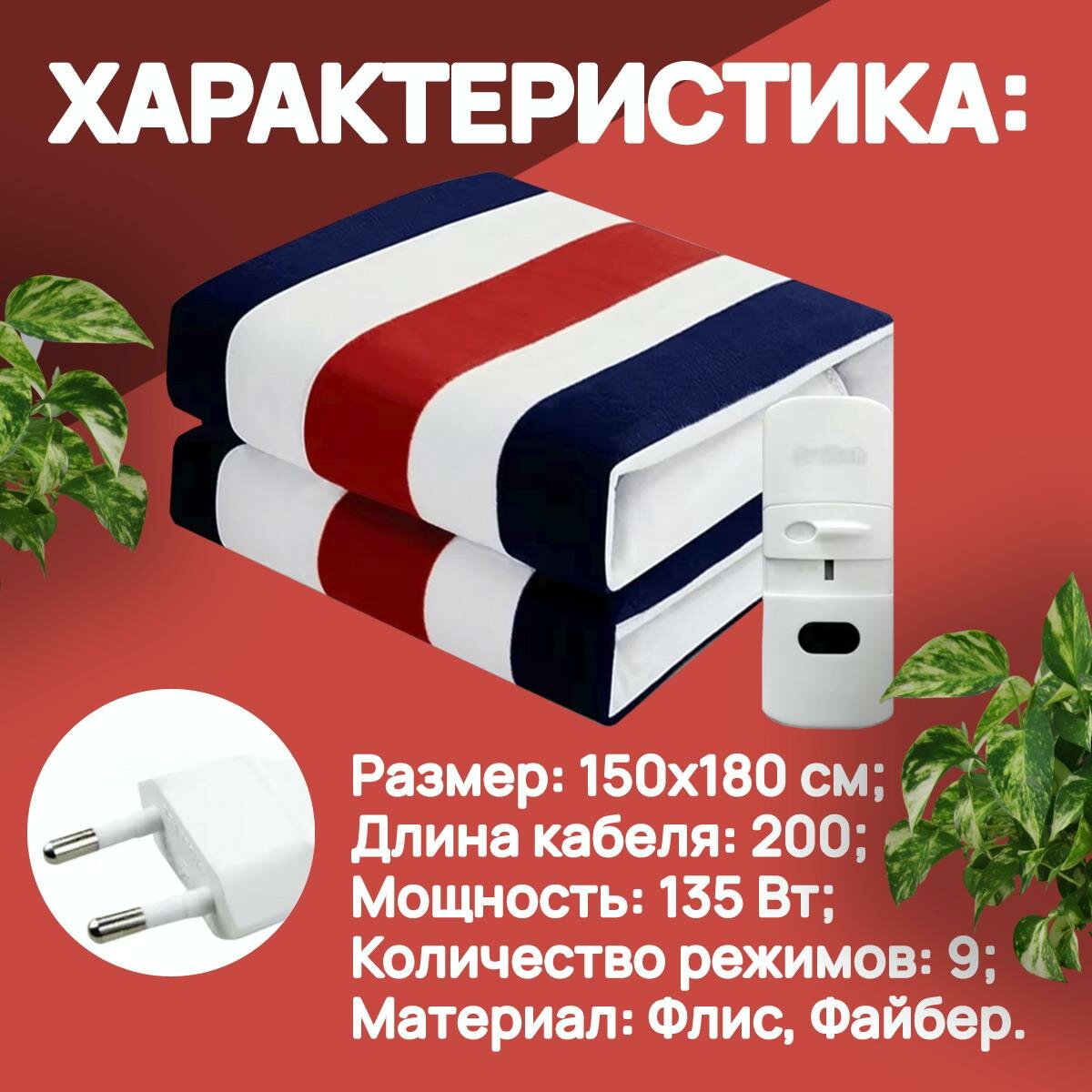 Одеяло с подогревом , электропростынь 150х180 см, электроодеяло, 9 режимов нагрева, 2 зоны оборева.