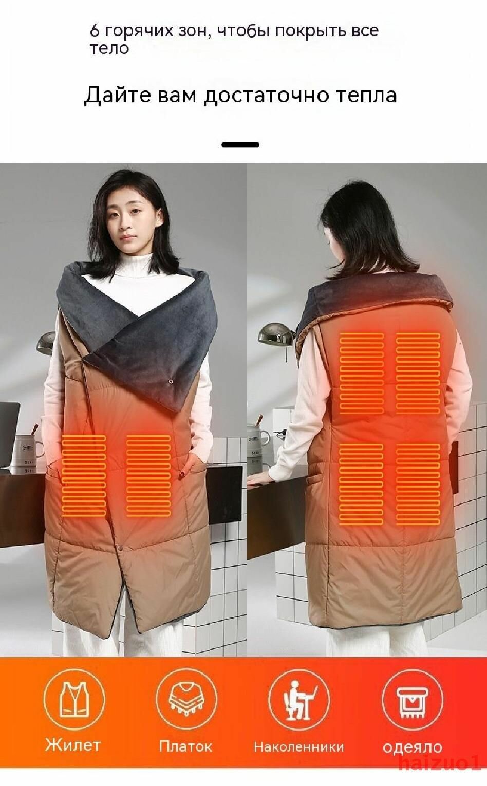 Носимое электрическое одеяло, Электроплед USB-шаль с подогревом, 3 уровня нагрева