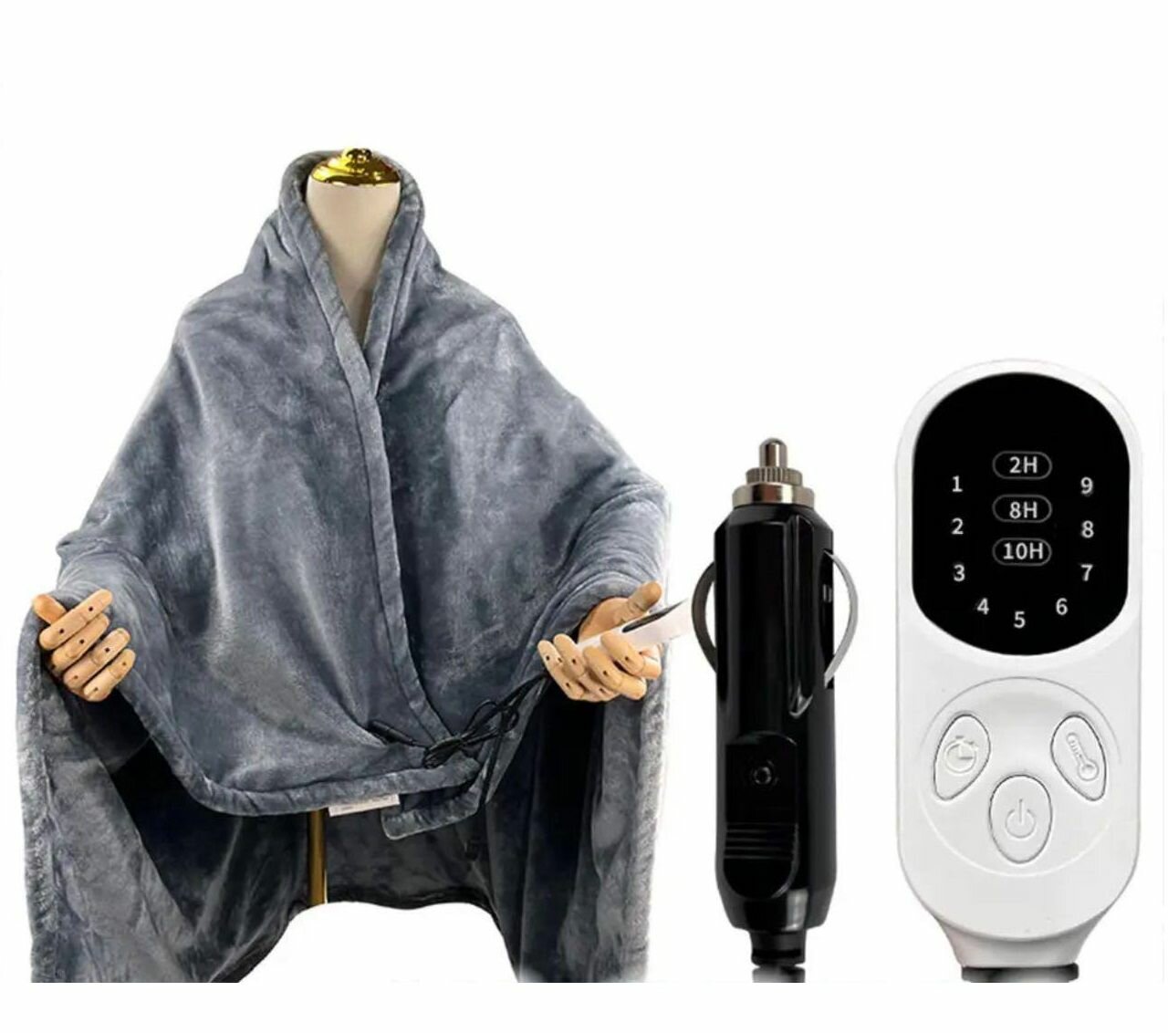 10 цен на Автомобильное электрическое одеяло 150х100 см с питанием от автоприкуривателя и таймером