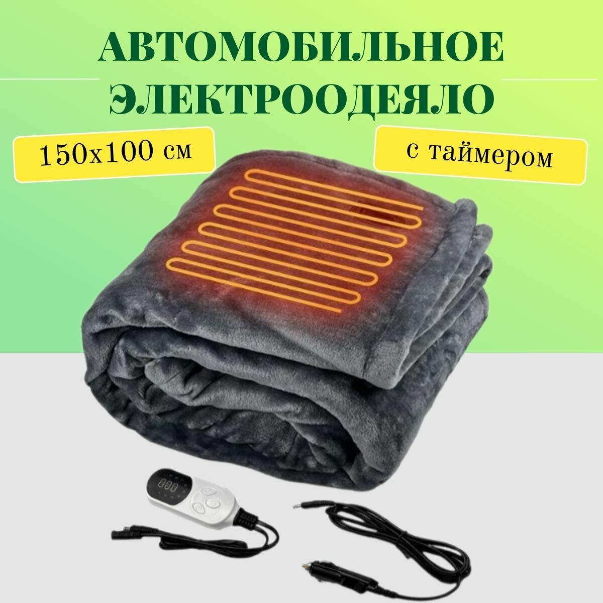 Автомобильное электрическое одеяло 150х100 см с питанием от автоприкуривателя и таймером информация: