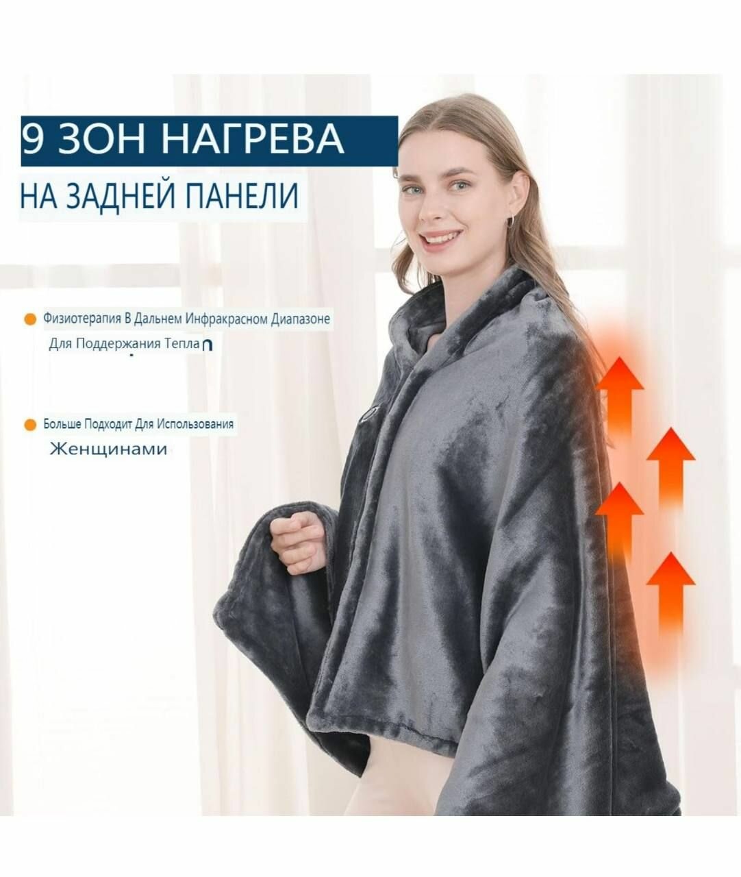 Носимое электрическое одеяло, Электроплед USB-шаль с подогревом, 3 уровня нагрева