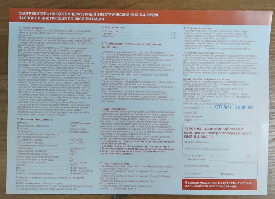 Отзывы на Одеяло эл. 2 зоны обогрева (145х185см) 78021 (ОНЭ-4-100/220) бордовое