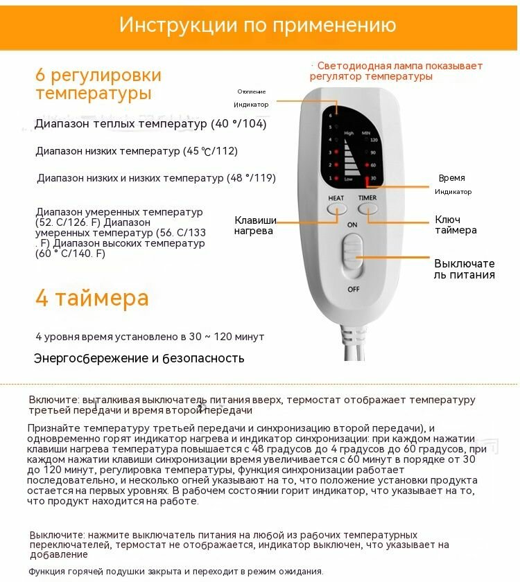 Бытовая физиотерапевтическая грелка электрическое одеяло -hj информация: