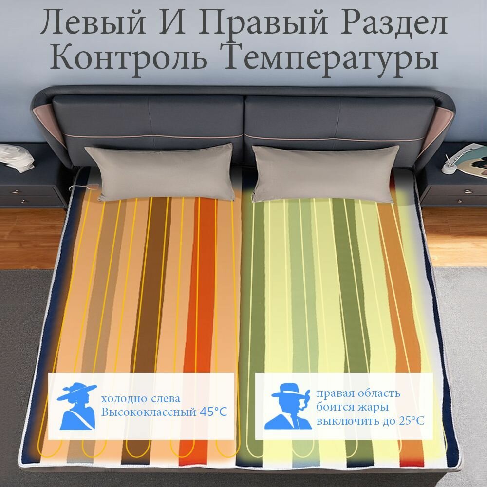 Одеяло с подогревом , электропростынь 150х180 см, электроодеяло, 9 режимов нагрева, 2 зоны оборева.