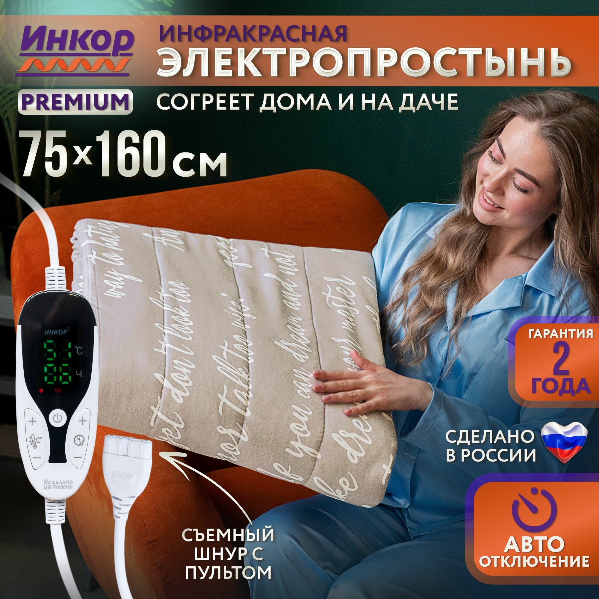 Электропростынь односпальная 75х160 см инкор Премиум, электропростыня с подогревом, инфракрасная информация: