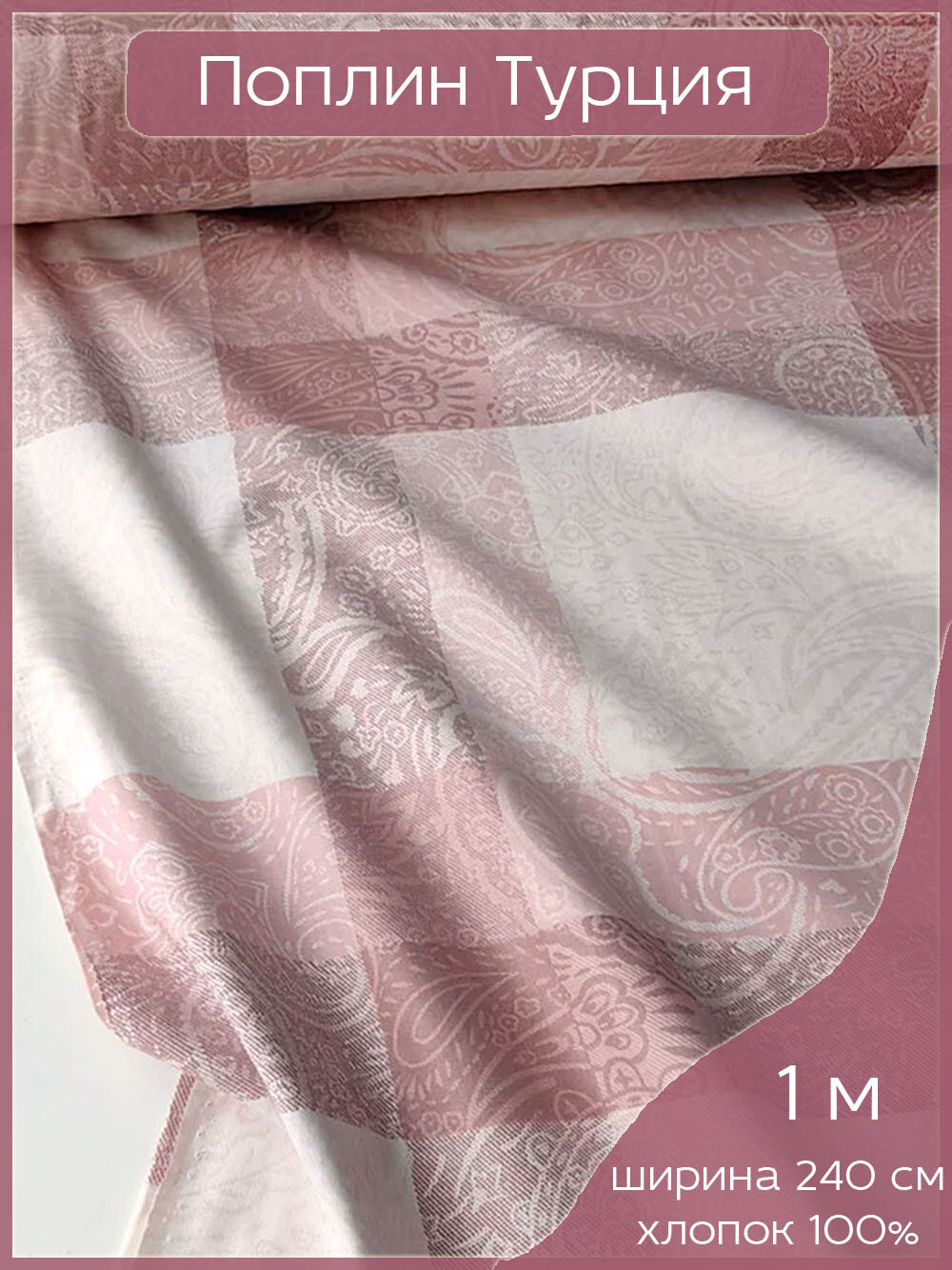 Ткань для шитья, 100 % хлопок поплин Турция для домашнего текстиля, пудрово-розовый в клетку, 1 м х 240 см информация:
