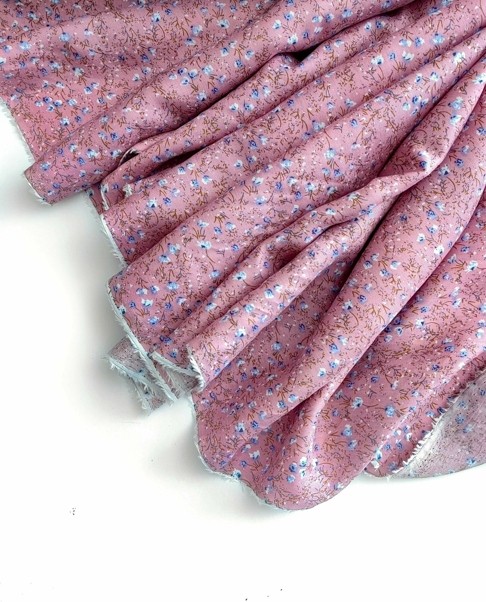 Ткань для шитья блуз, платьев, юбок 100% Вискоза в цветочек пудрово-розовый отрез 1.3м