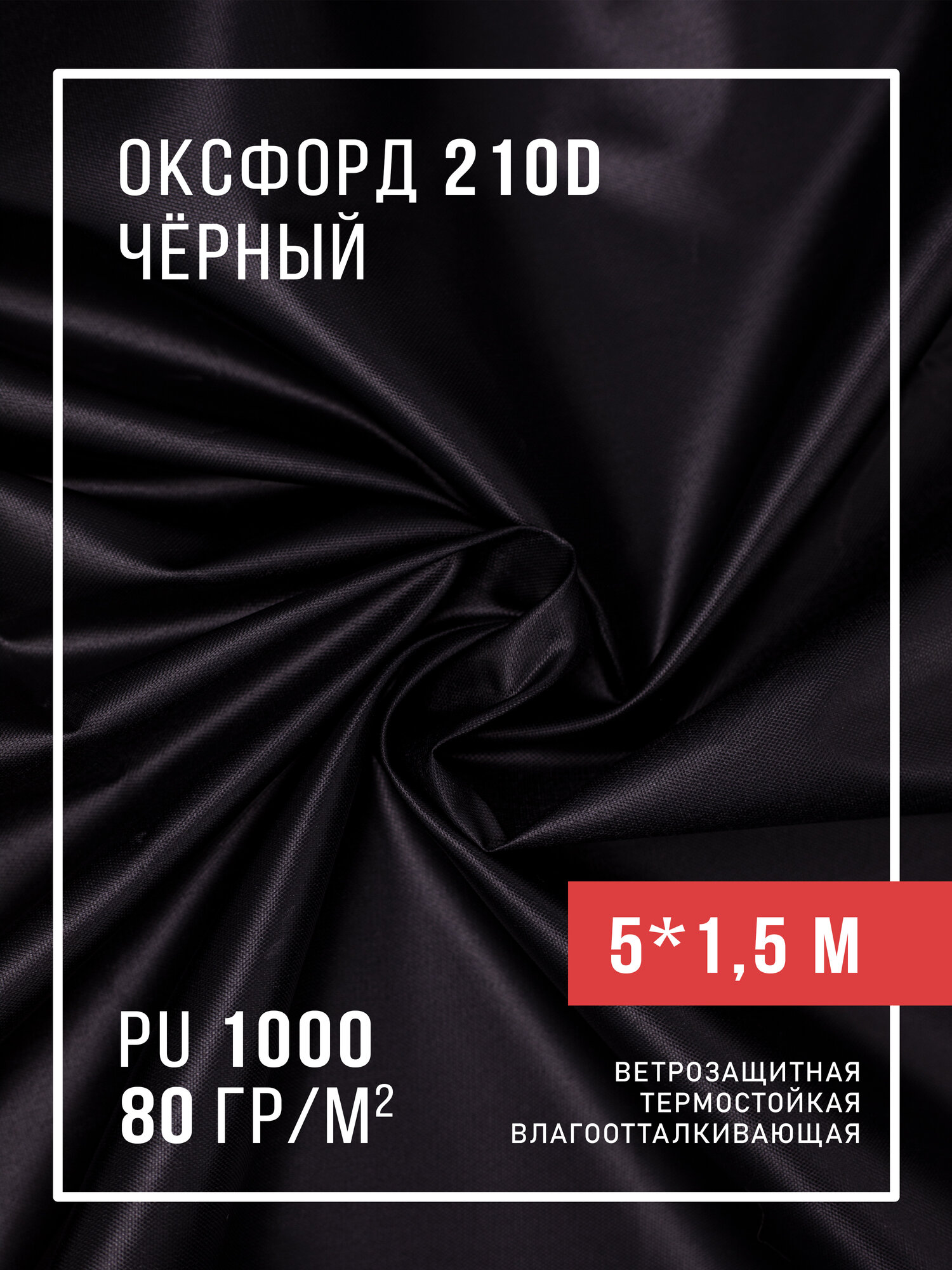 Ткань оксфорд 210D уличная с водоотталкивающей пропиткой 5 метров, черный информация: