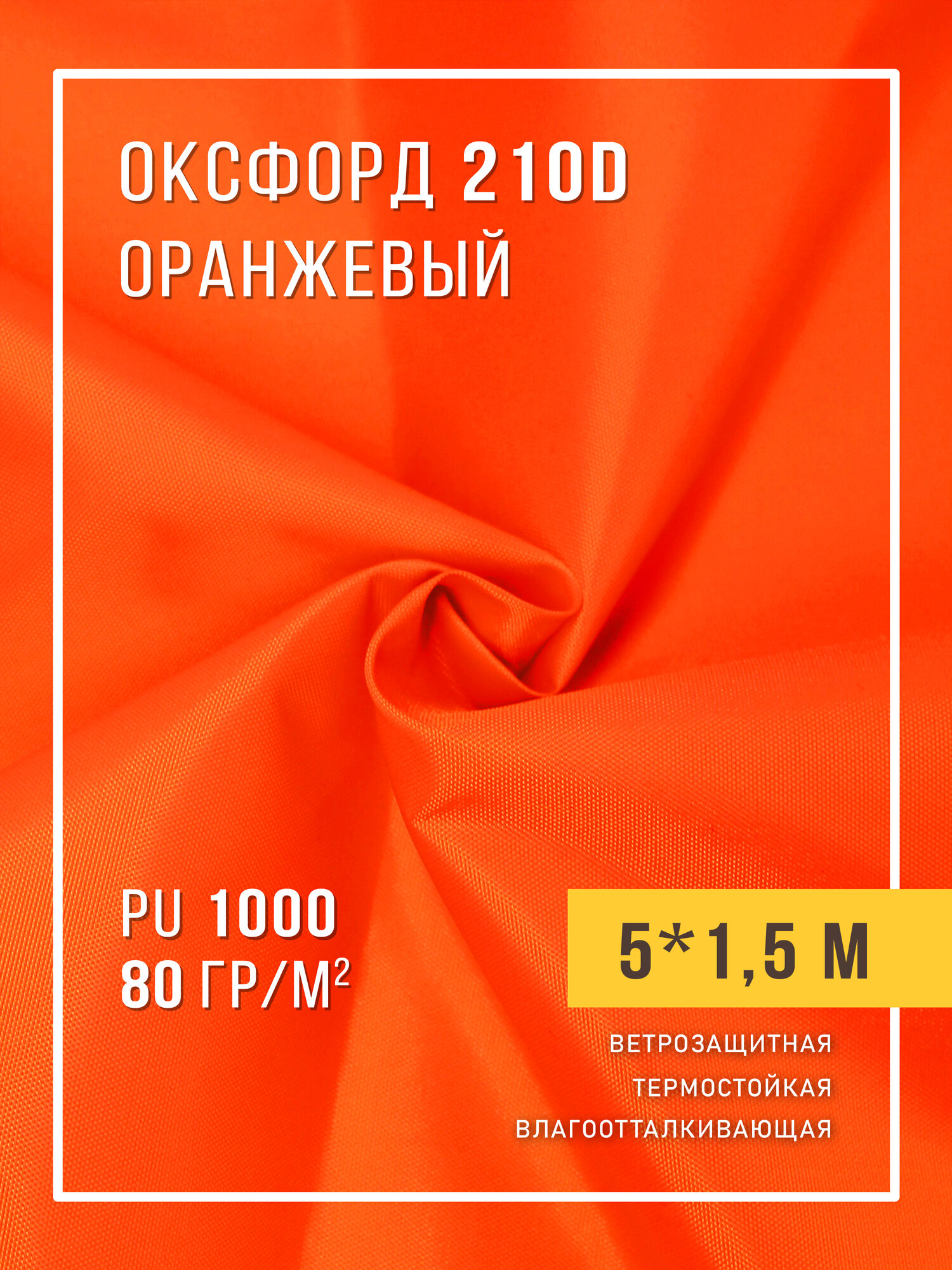 Ткань оксфорд 210D уличная с водоотталкивающей пропиткой 5 метров, оранжевый информация: