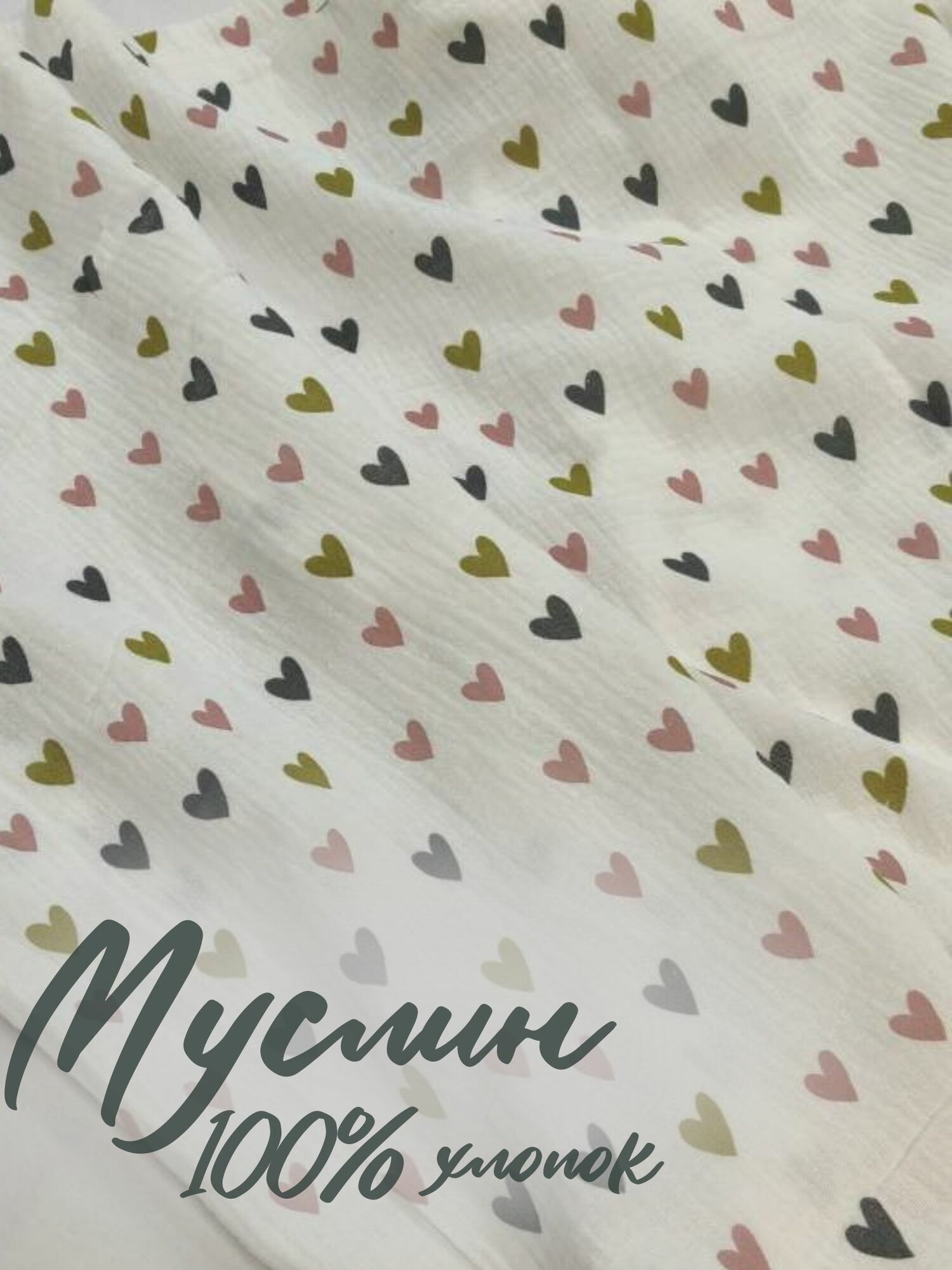 10 цен на Муслин двухслойный жатый "сердечки", ткань на отрез