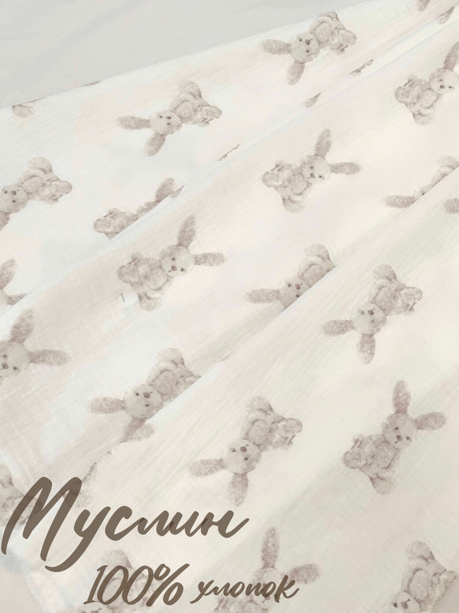 10 цен на Муслин двухслойный жатый "Зайцы", ткань на отрез