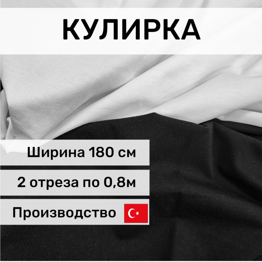 10 цен на Трикотаж кулирка для шитья: 2 отреза по 0,8*1,80м (чёрный и белый), производство Турция
