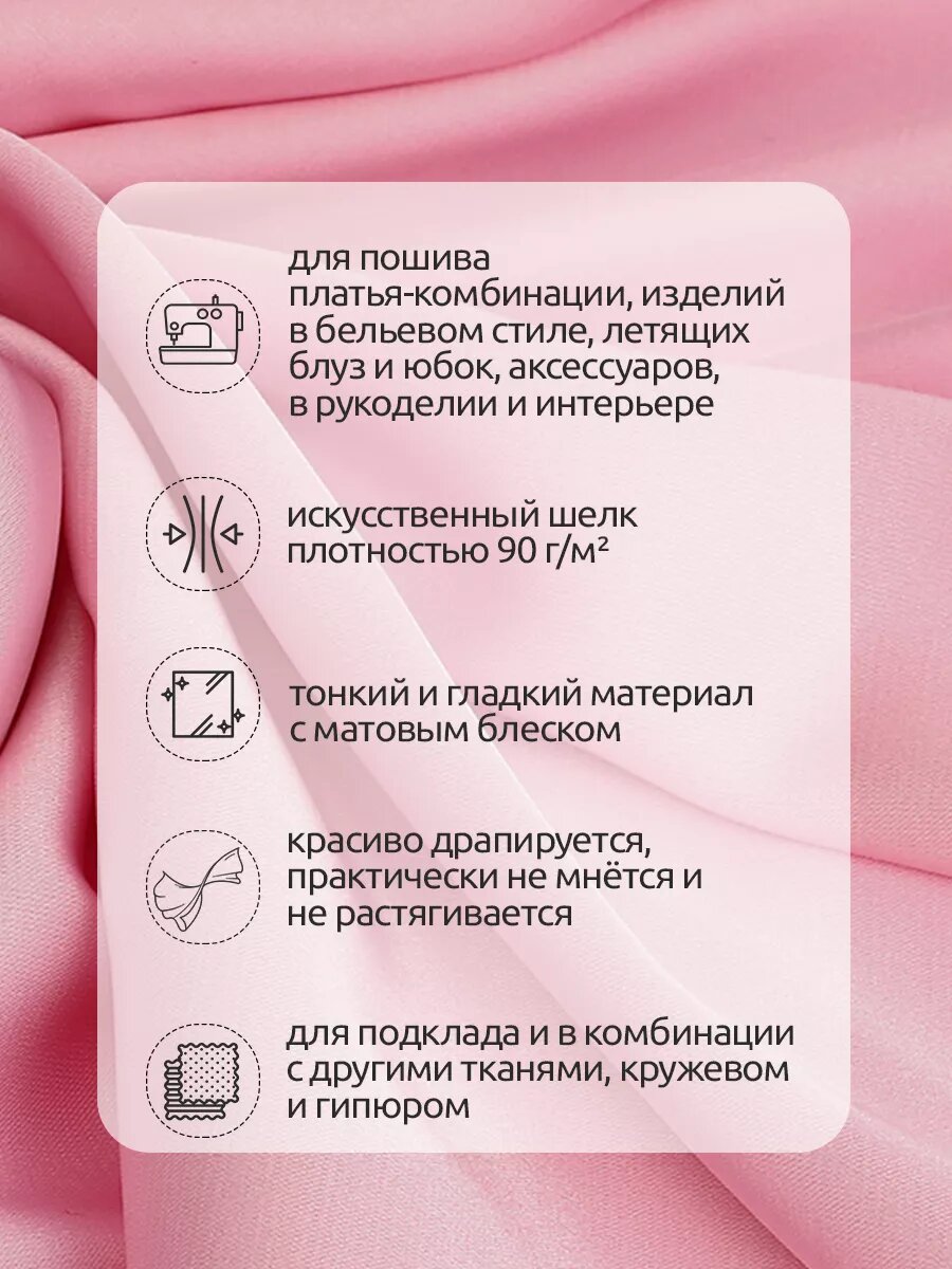 Отзывы на Ткань шелк Армани 90г/м² 97% полиэстер 3% спандекс шир.150см цв.119 св. розовый уп.2м