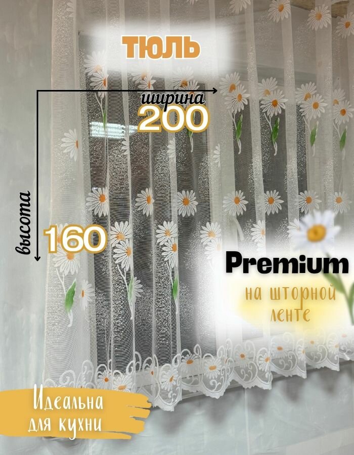Тюль короткий на шторной ленте в гостиную, на кухню информация: