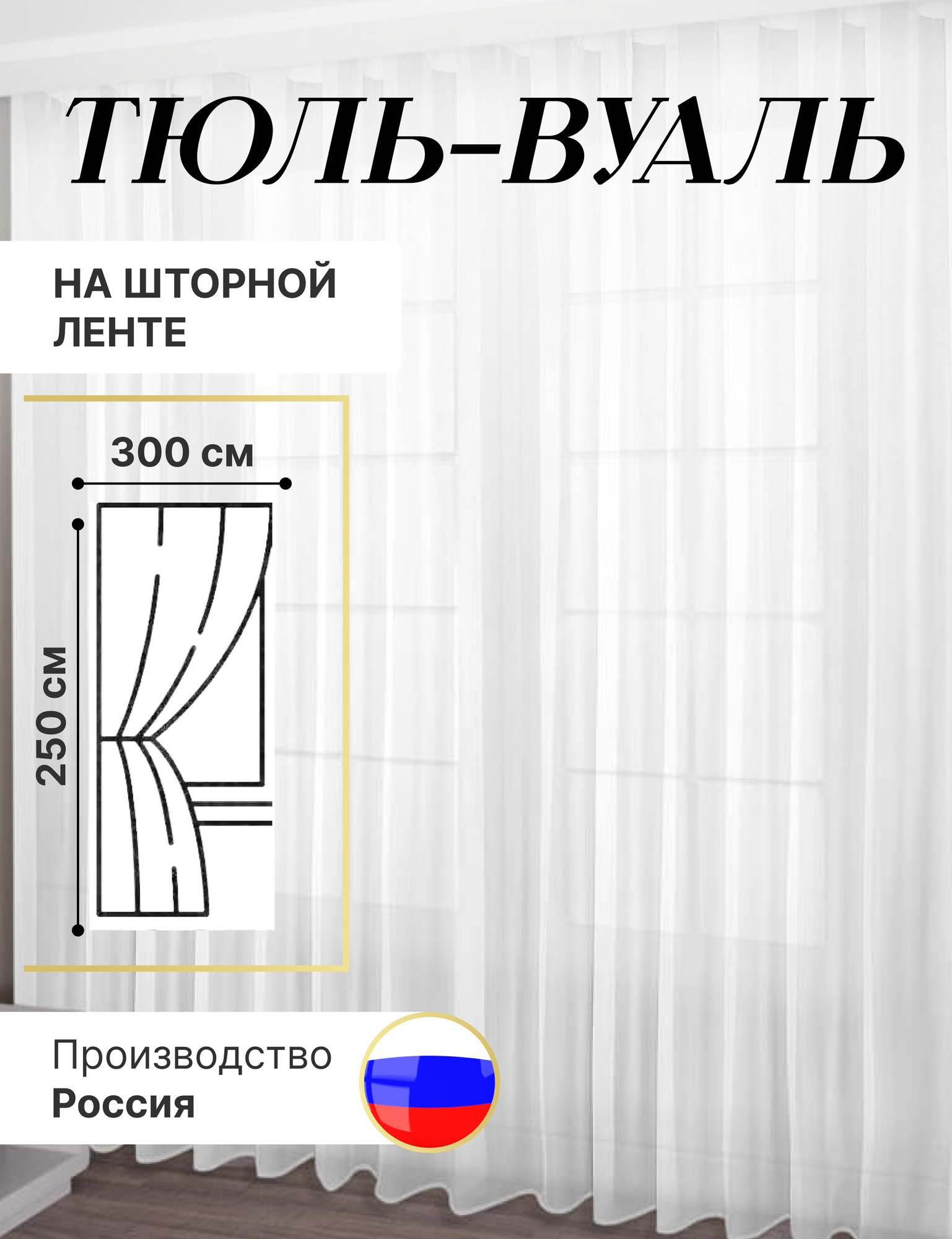 Тюль Вуаль Купитекс 300x250 на шторной ленте белый полупрозрачный информация: