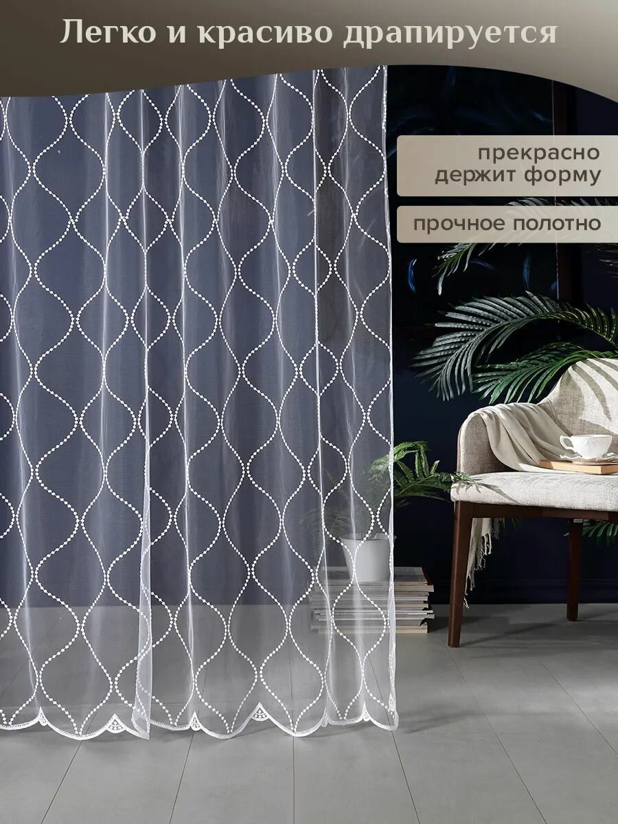 Тюль Magiza 400*240 с вышивкой для всех видов помещений, белая 3 905 ₽