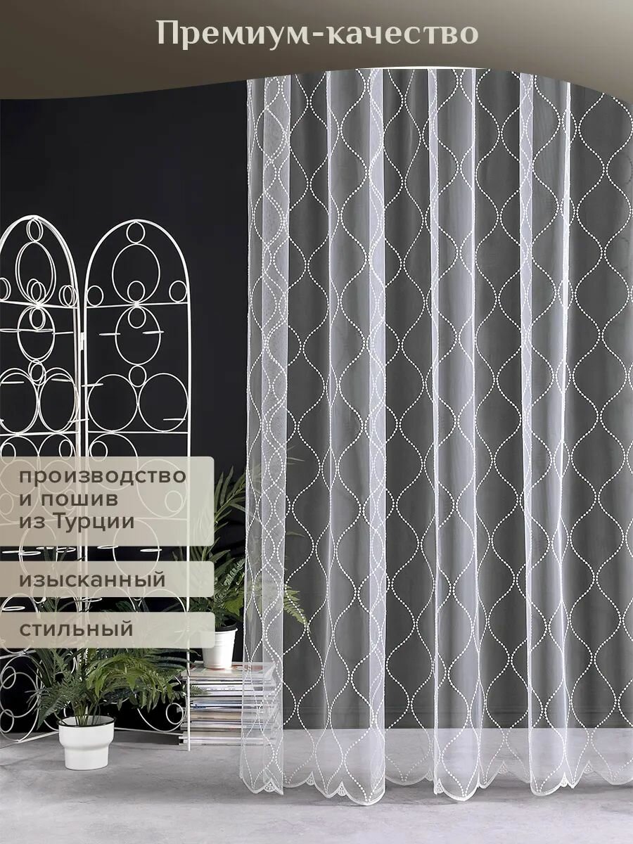 Тюль для гостиной Magiza 500*270 с вышивкой и рисунком волна белая 4 125 ₽