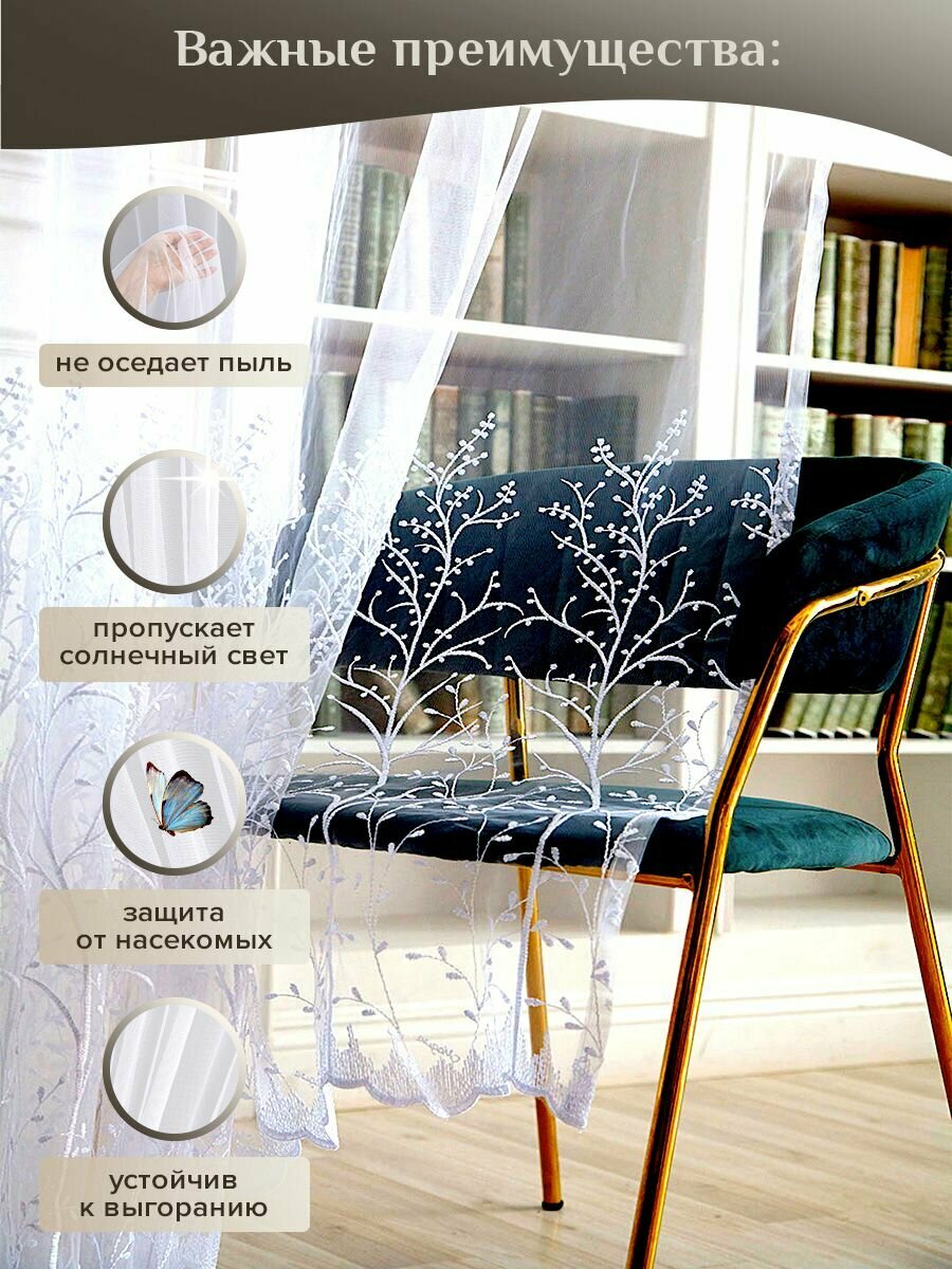 Тюль Magiza 400*270 с вышивкой для всех видов помещений, белая 3 550 ₽