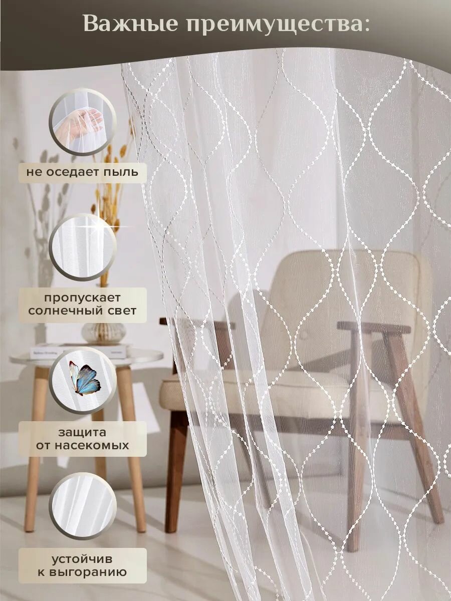 Тюль для комнаты Magiza 300*260 см с вышивкой на шторной ленте белая информация: