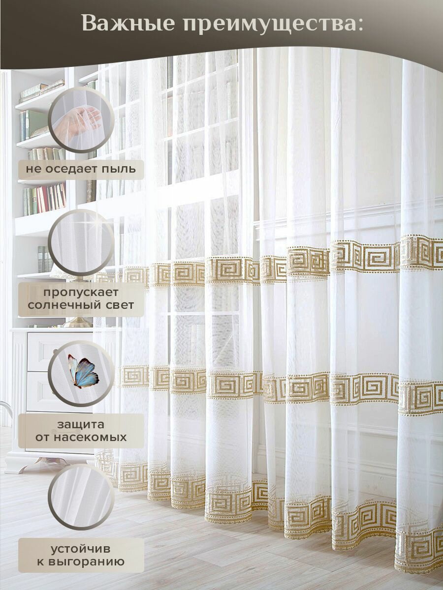 Тюль Magiza 200*240 с вышивкой в греческом стиле. в гостиную 2 090 ₽