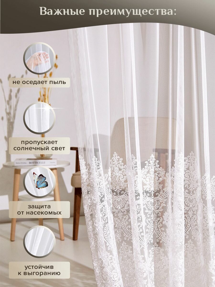 Тюль Magiza 400*270 с вышивкой для всех видов помещений, белая 3 550 ₽