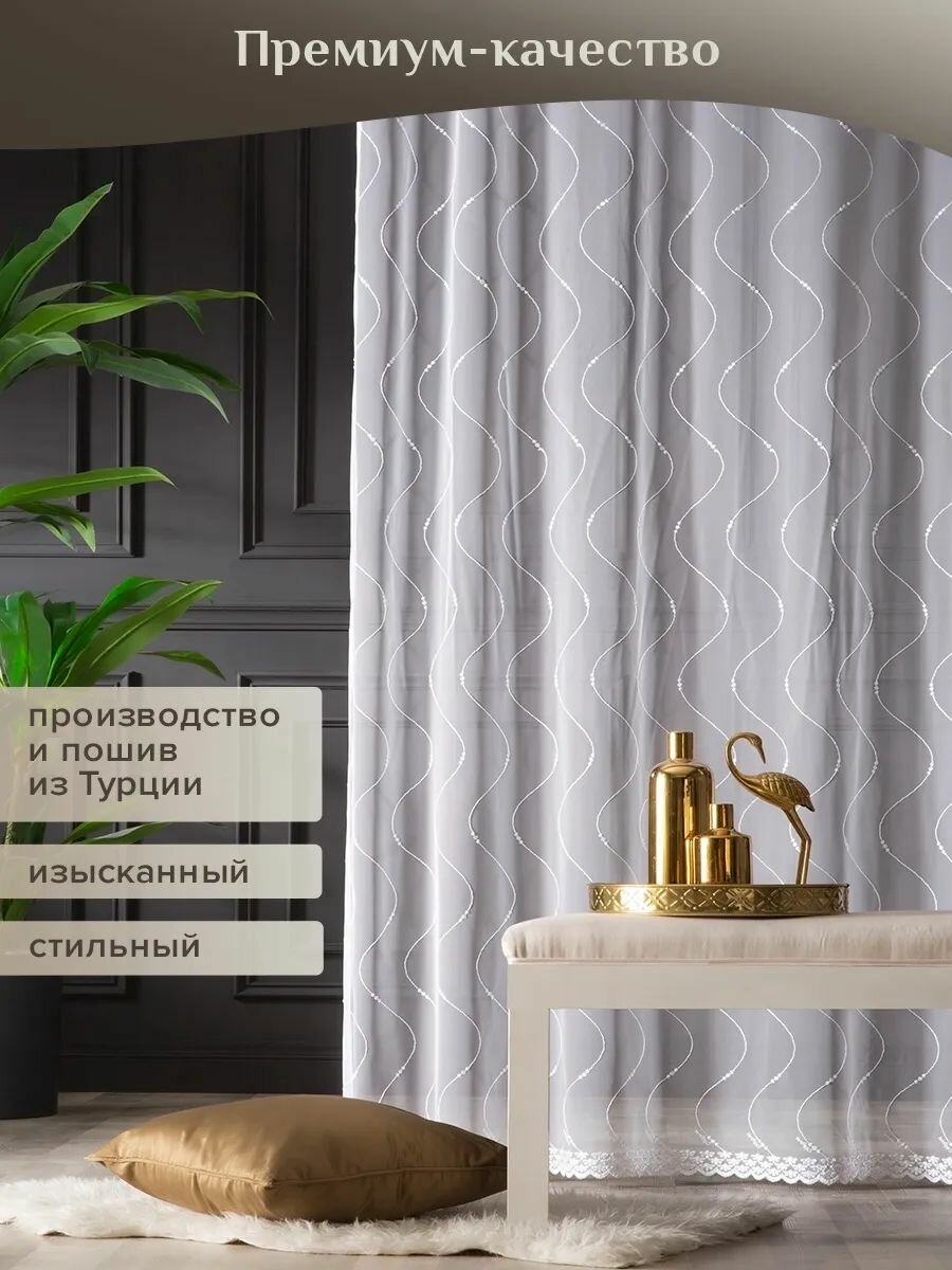 Тюль для гостиной Magiza 500*270 с вышивкой и рисунком волна белая информация: