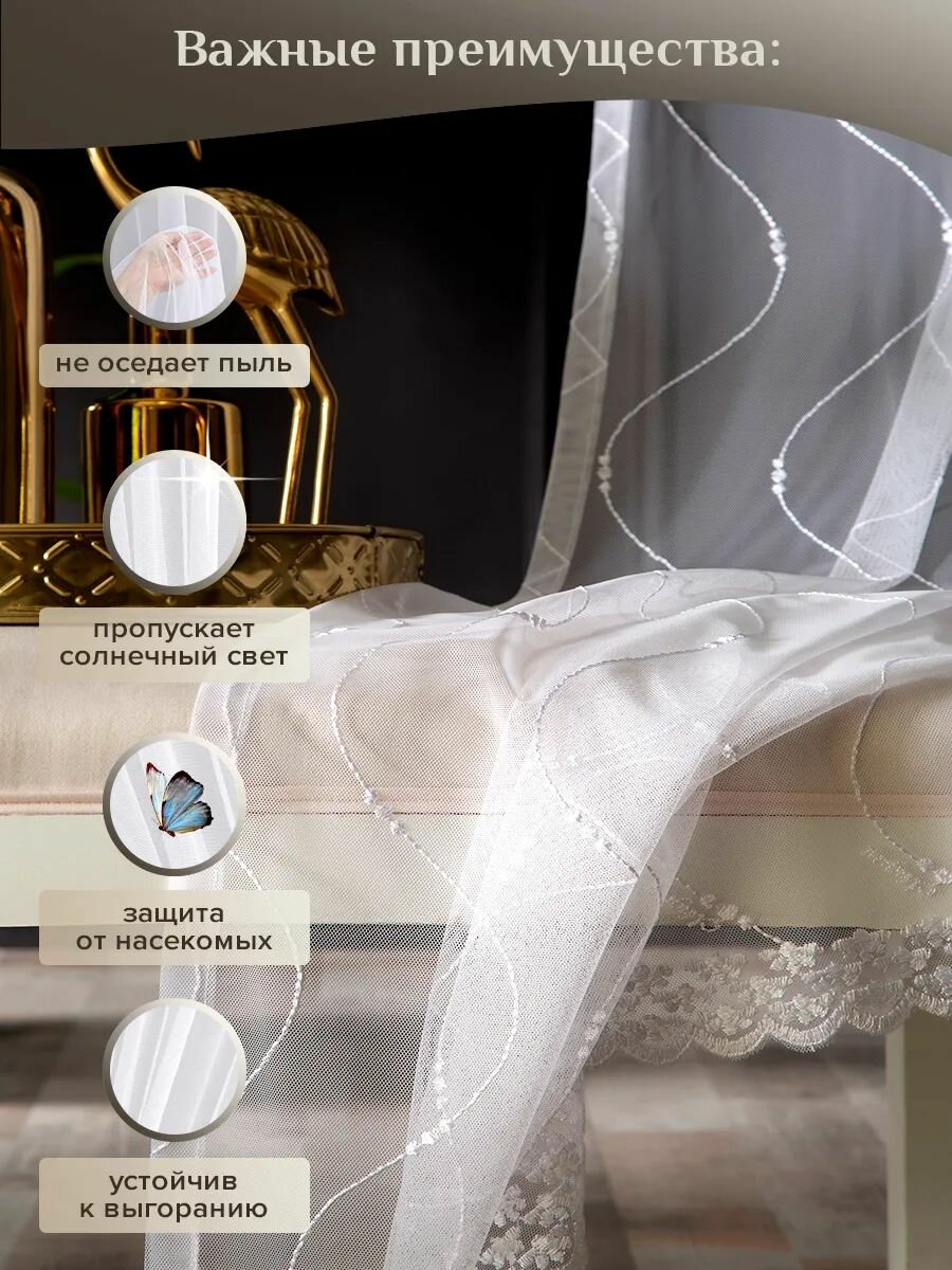 10 цен на Тюль для гостиной Magiza 500*270 с вышивкой и рисунком волна белая